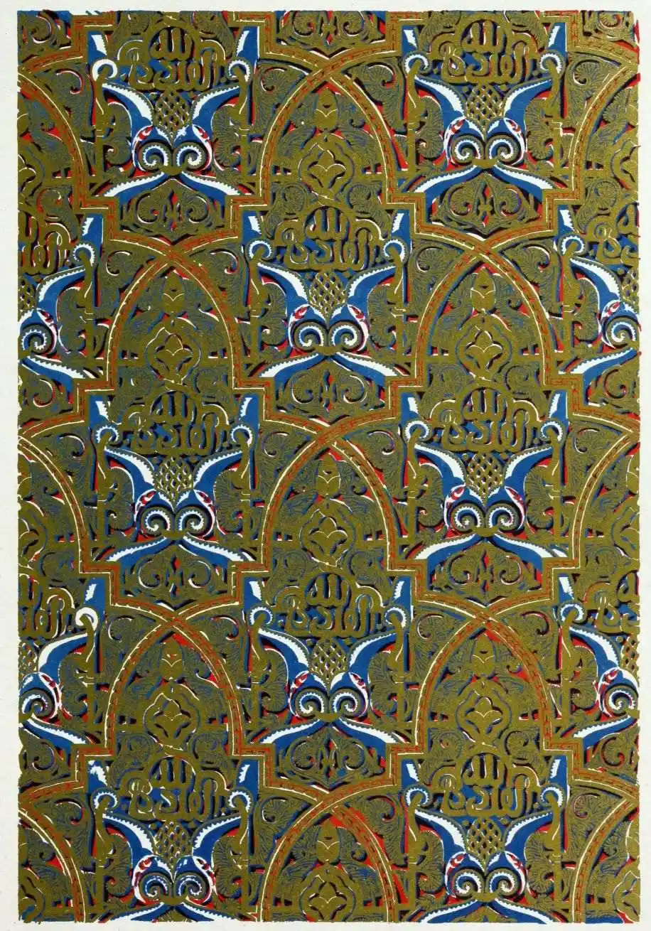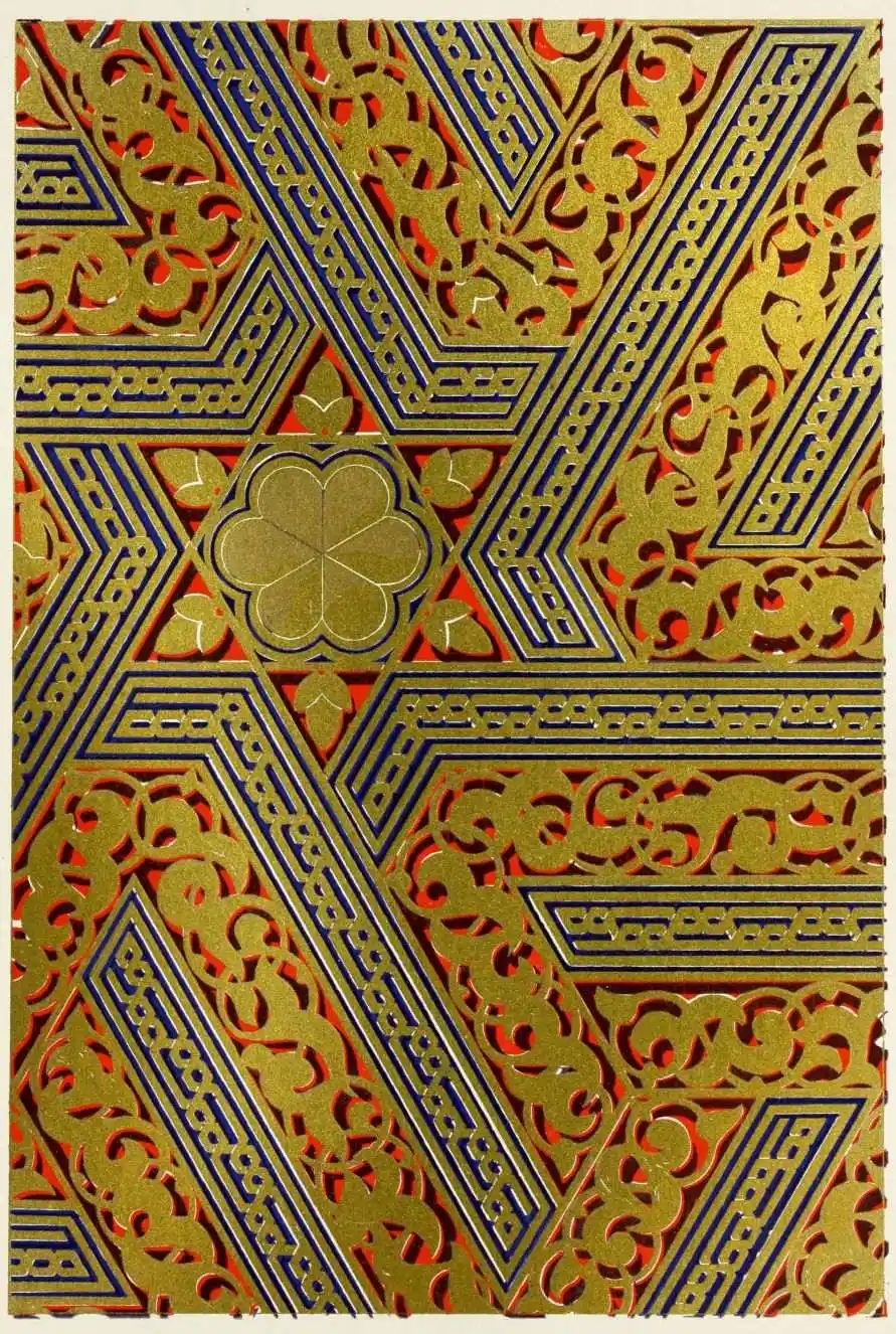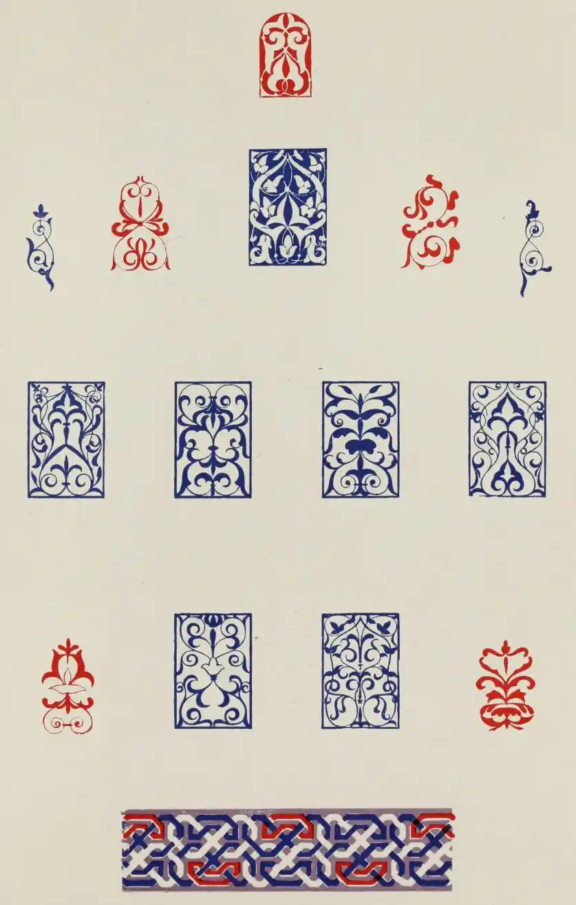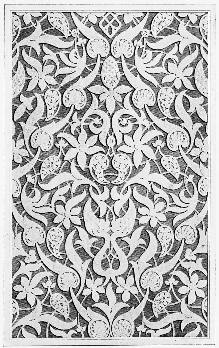 “It is really impossible to do justice, in a journal of this kind, to the sumptuous volume (its price is two guineas and the book is worth it) before us. To do that—to give the reader any adequate notion of the beauty of the illustrations with which it is enriched—we should have to summon all the resources of the colour printer’s art to our assistance, in order to reproduce them in a special edition de luxe of the “P.M.G.” Inasmuch as that is not to be done, we must ask the reader to take it on trust from us that the illustrations of Moorish decorative art are something quite out of the common.... The making of this book must, surely, have been a labour of love; and love’s labour has certainly not been lost.”—Pall Mall Gazette.