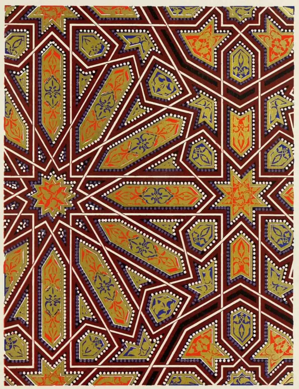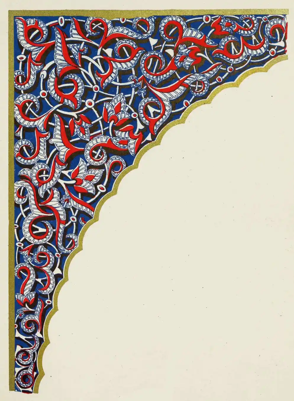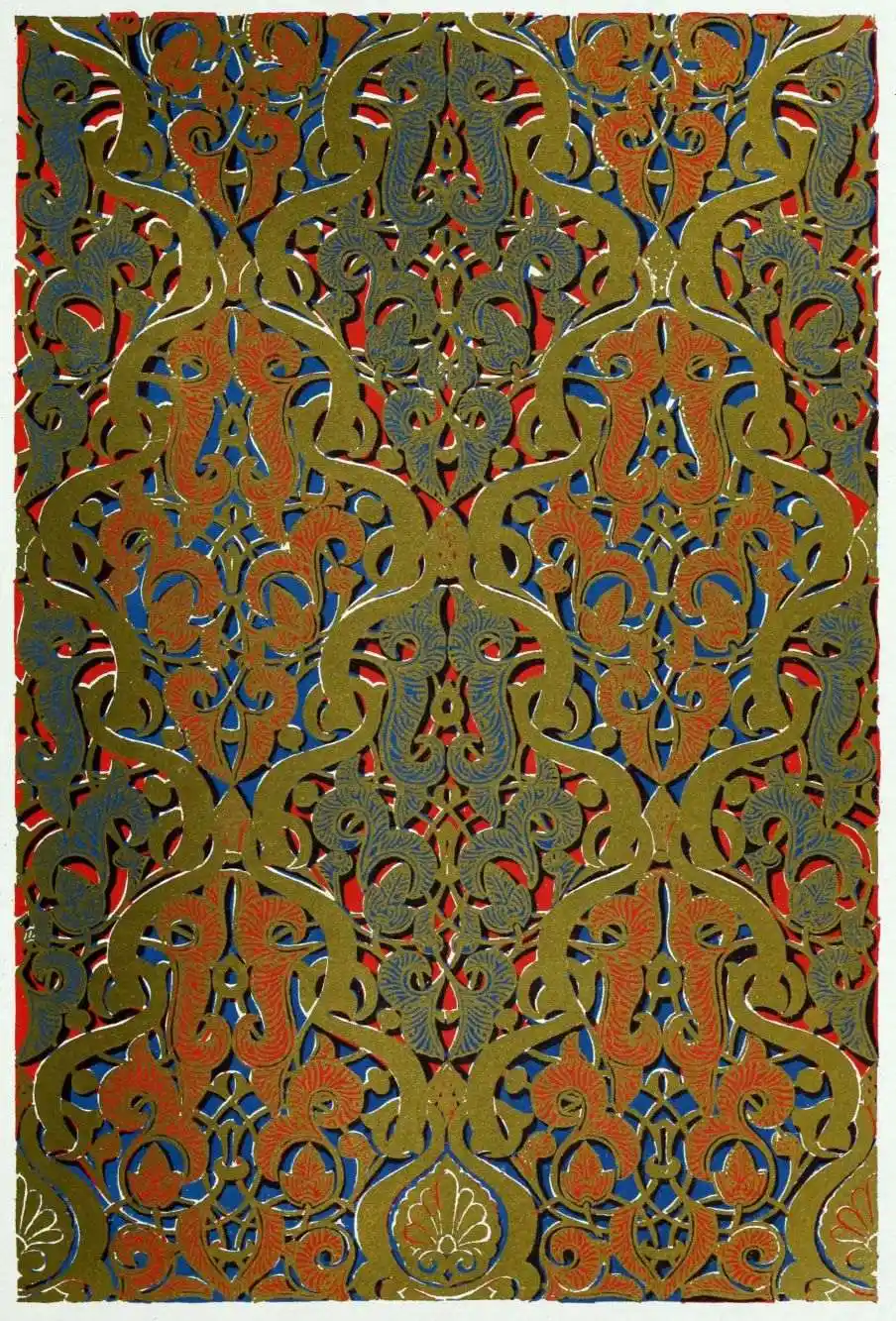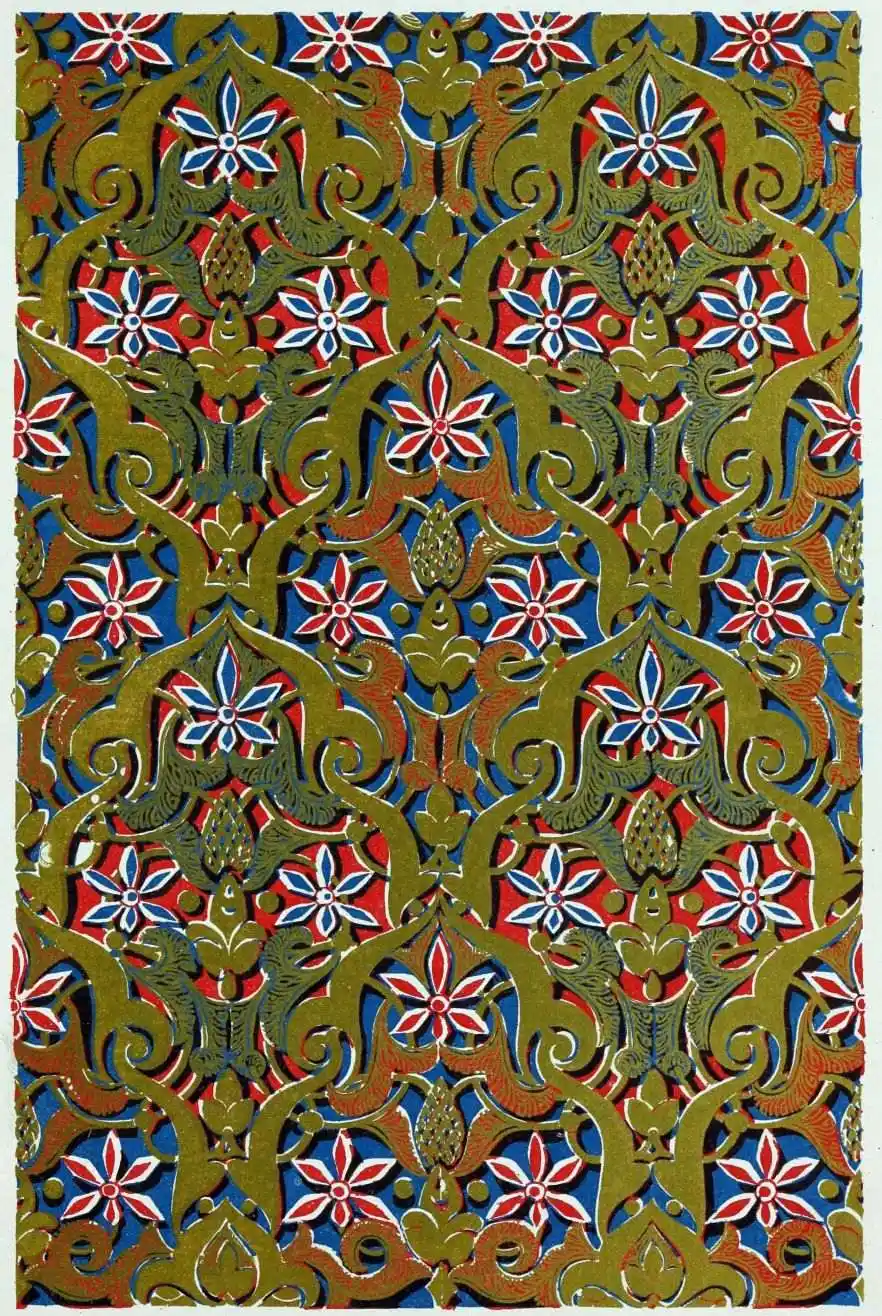 “It is really impossible to do justice, in a journal of this kind, to the sumptuous volume (its price is two guineas and the book is worth it) before us. To do that—to give the reader any adequate notion of the beauty of the illustrations with which it is enriched—we should have to summon all the resources of the colour printer’s art to our assistance, in order to reproduce them in a special edition de luxe of the “P.M.G.” Inasmuch as that is not to be done, we must ask the reader to take it on trust from us that the illustrations of Moorish decorative art are something quite out of the common.... The making of this book must, surely, have been a labour of love; and love’s labour has certainly not been lost.”—Pall Mall Gazette.