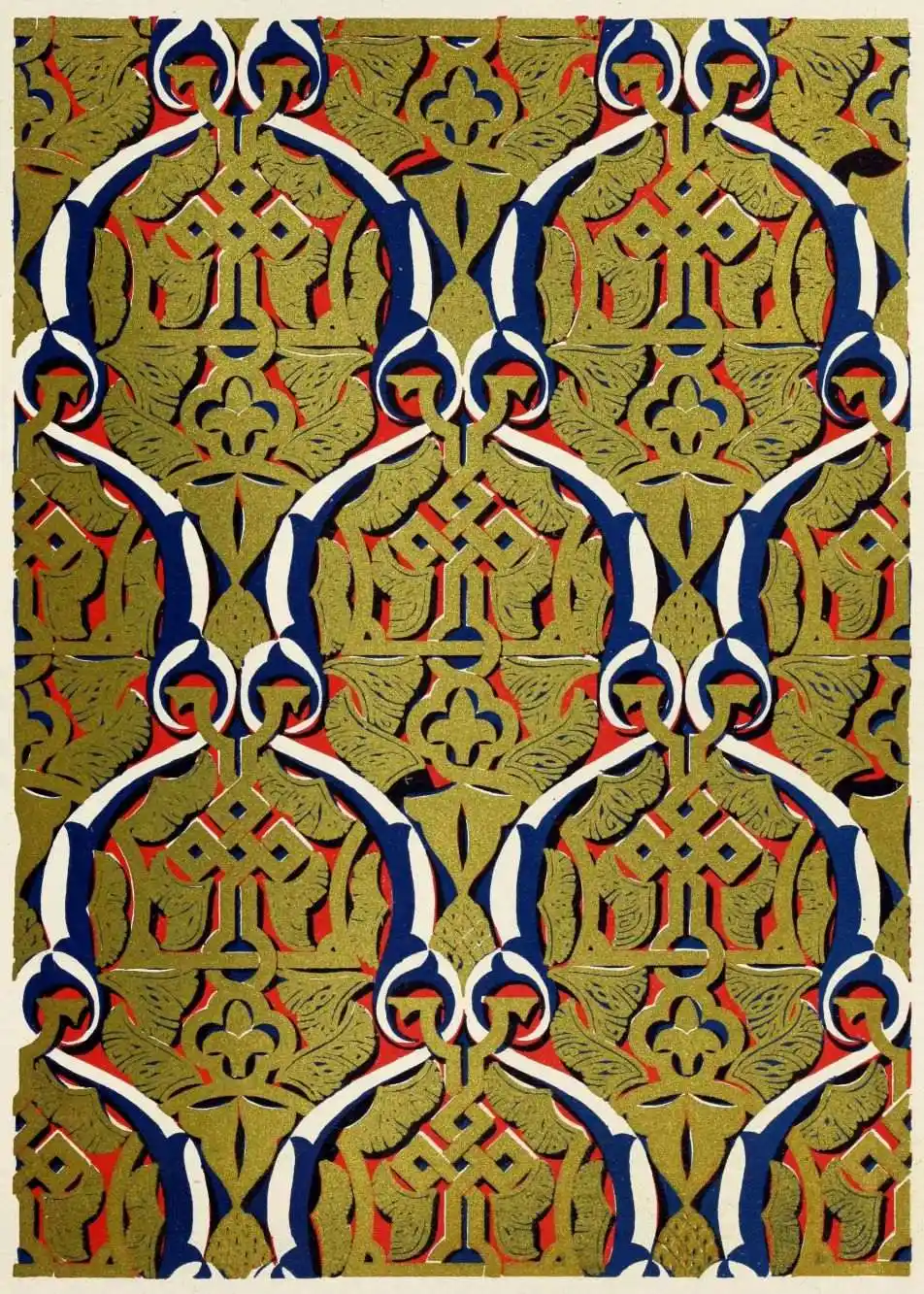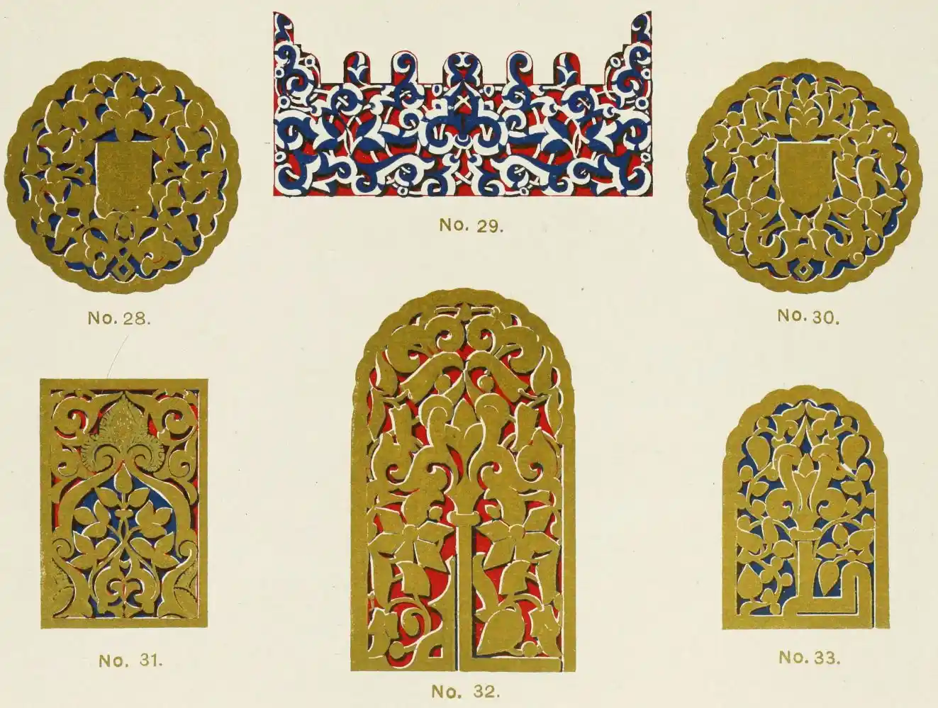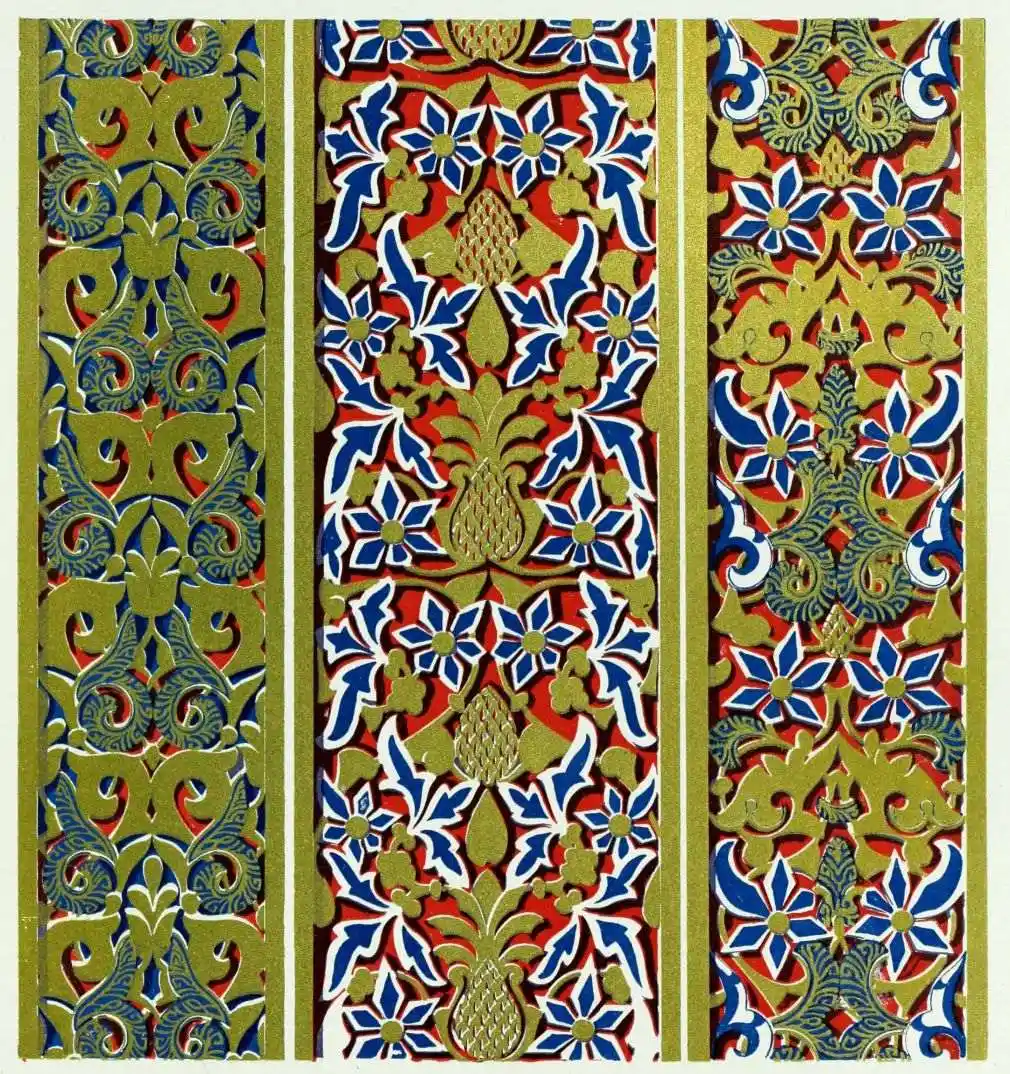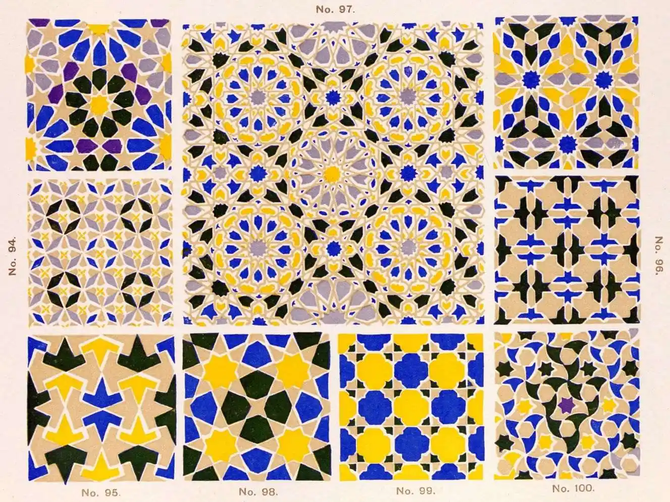“It is really impossible to do justice, in a journal of this kind, to the sumptuous volume (its price is two guineas and the book is worth it) before us. To do that—to give the reader any adequate notion of the beauty of the illustrations with which it is enriched—we should have to summon all the resources of the colour printer’s art to our assistance, in order to reproduce them in a special edition de luxe of the “P.M.G.” Inasmuch as that is not to be done, we must ask the reader to take it on trust from us that the illustrations of Moorish decorative art are something quite out of the common.... The making of this book must, surely, have been a labour of love; and love’s labour has certainly not been lost.”—Pall Mall Gazette.