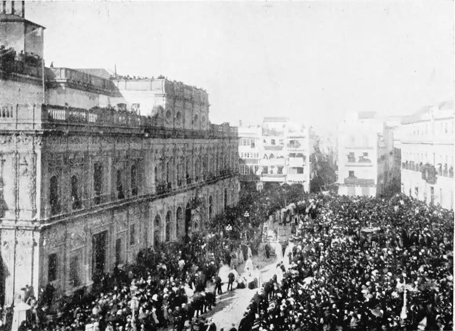 In connection with the American traffic of Seville it should be mentioned that in the village of Castilleja la Cuesta, near the city, is the house where Hernando Cortés died in 1547. The place has been acquired by the Duc de Montpensier, by whom it has been converted into a sort of museum. The Conquistador’s bones rest in the country which, with such intrepidity, he won for the Spanish race.