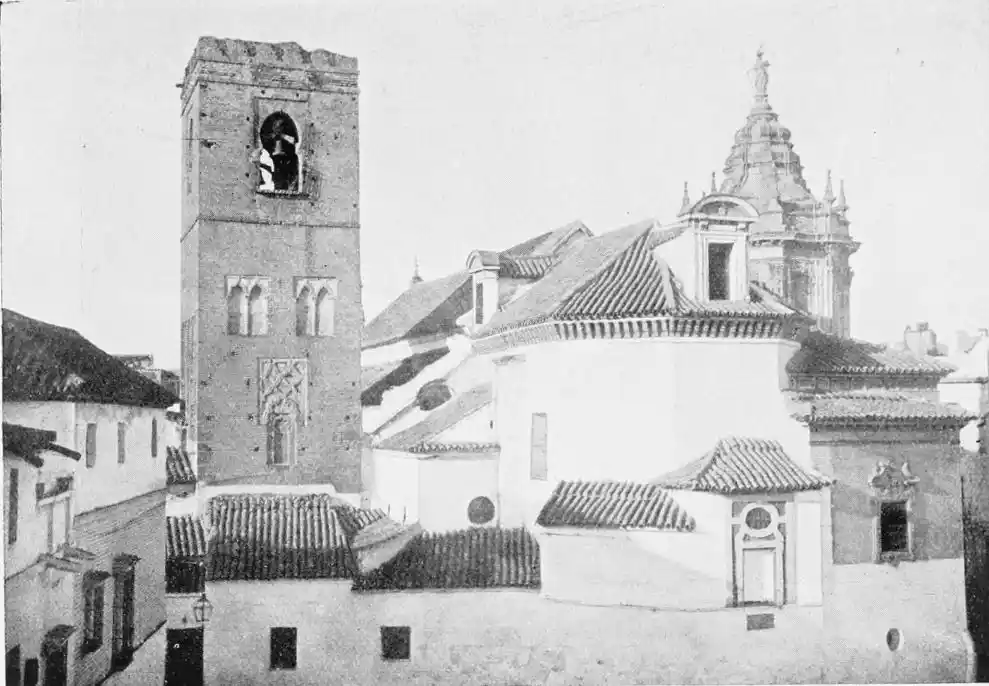 The site of the present collegiate church of San Salvador was occupied by a mosque, which was used by the Moors for a considerable time after the Christian conquest, and preserved its form down to the year 1669. An inscription on white marble relates that a minaret was constructed in the year 1080, by Mut’amid Ben Abbad, that “the calling to prayer might not be interrupted.”