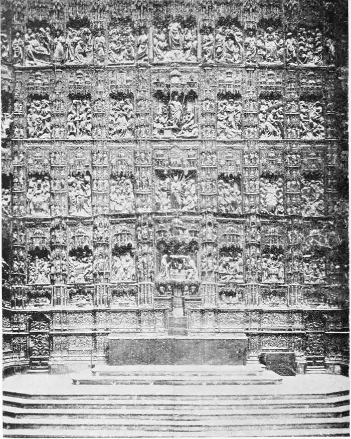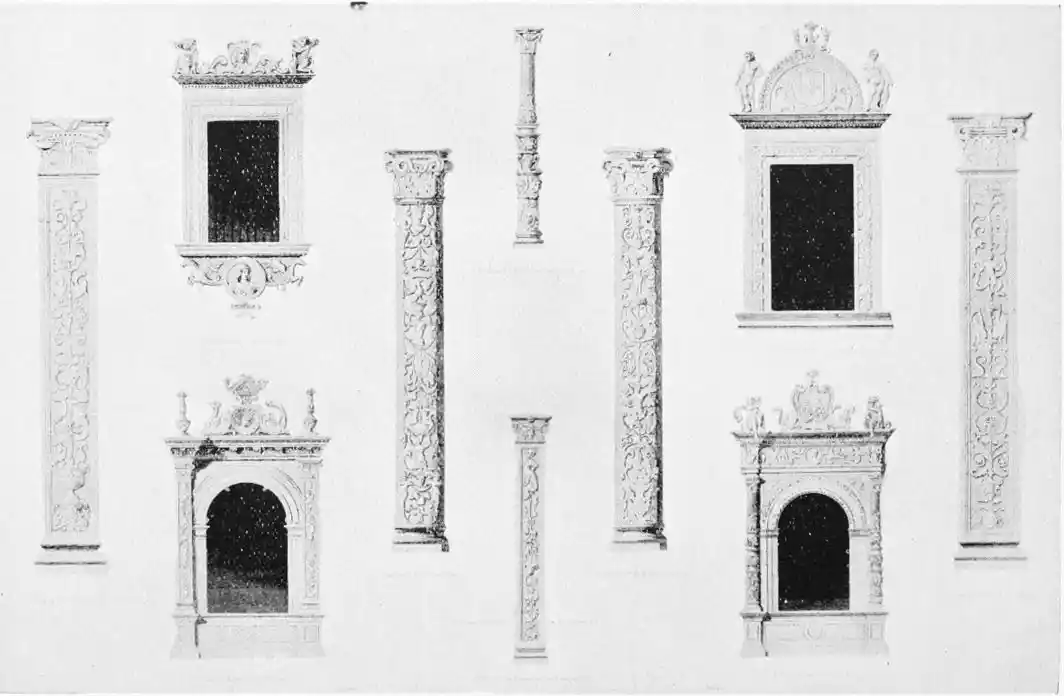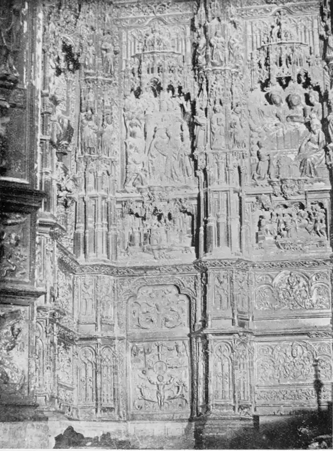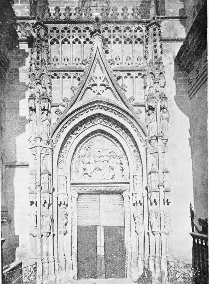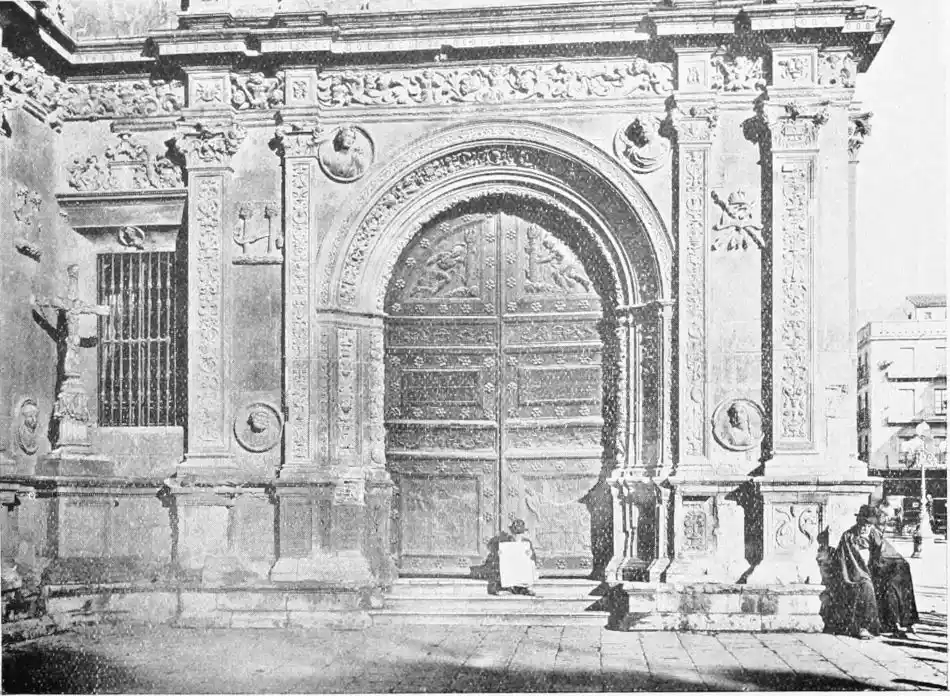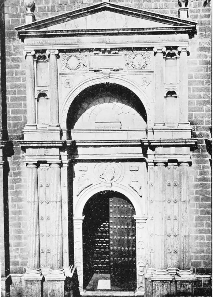 The Renaissance made itself felt in Spain during the reign of Charles V., and was productive of the plateresco style. Seville contains two imposing monuments of this type of architecture—the Ayuntamiento (Town Hall) and Lonja (Exchange). The first-named was begun in 1527 by Diego de Riaño, and completed under Felipe II., about forty years later. Madrazo considers the building “somewhat inharmonious through the variety, a little excessive, of its lines, but admirable for the richness of the decoration and for fine and delicate{98} execution—a merit of the first importance in structures of this style, where the sculptor or stone-cutter ranked with the architect.”