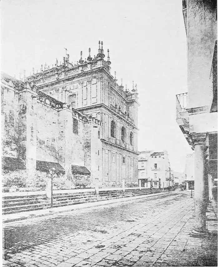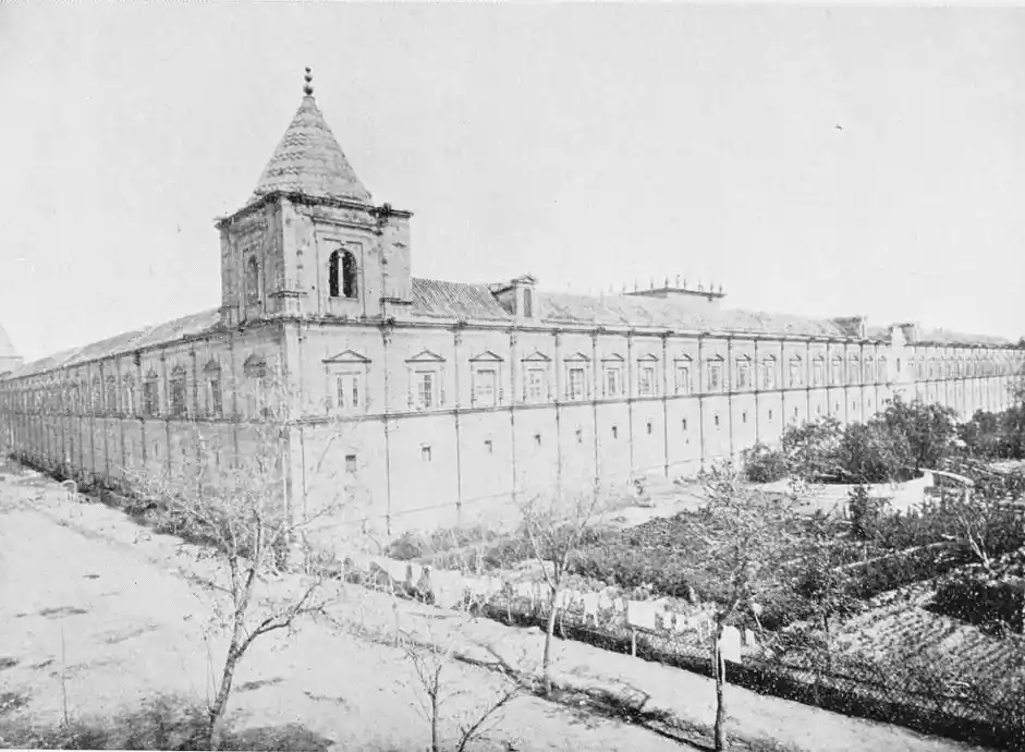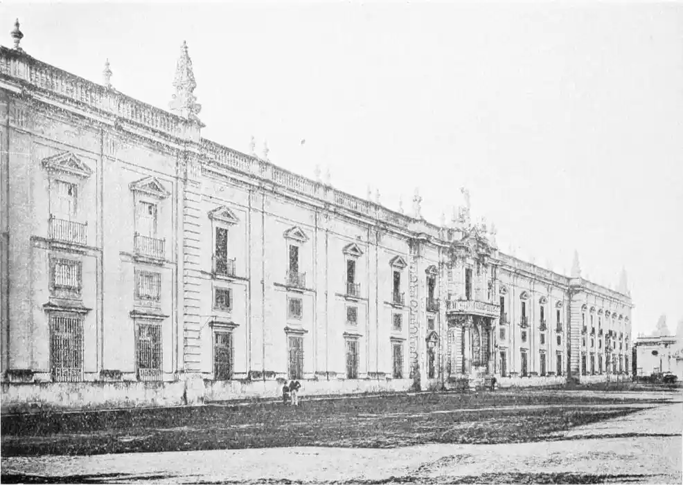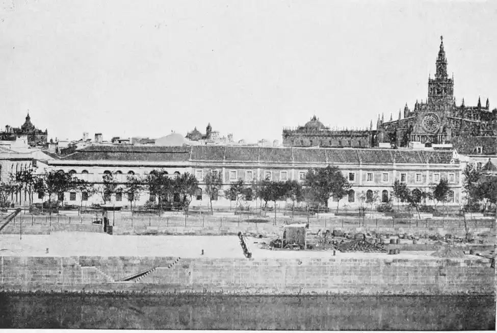 The Fabrica de Tabacos is a vast building completed in 1757. Apart from its size, it possesses no architectural interest, and though a favourite showplace for tourists, does not come within the scope of a work of this character.{107}