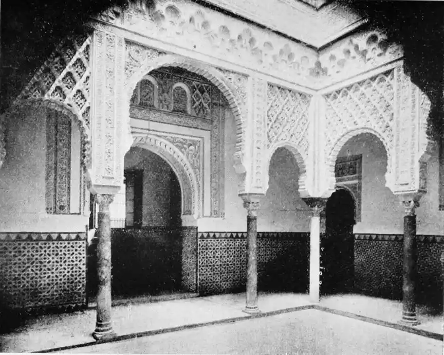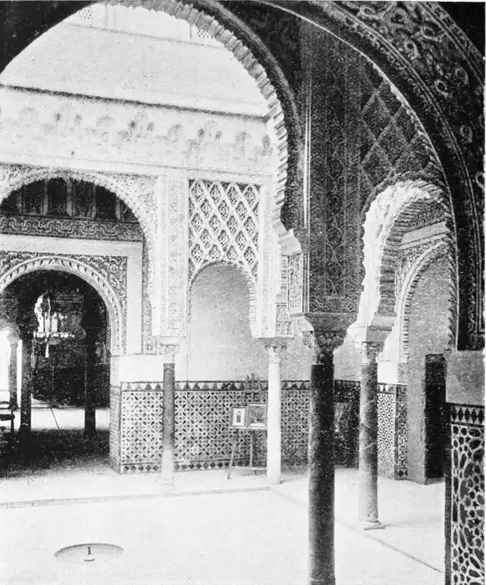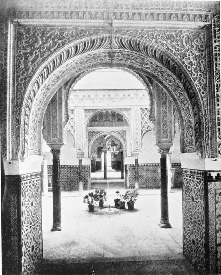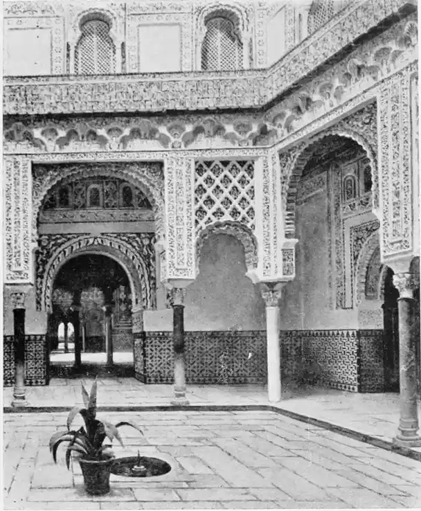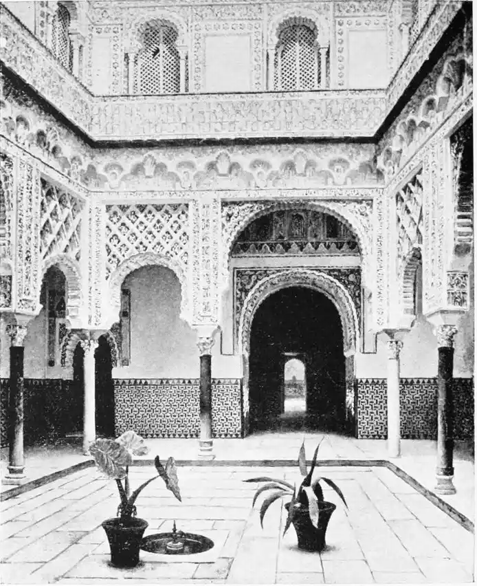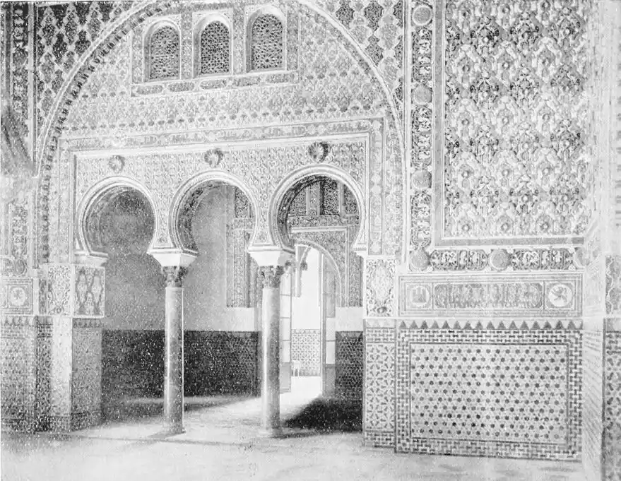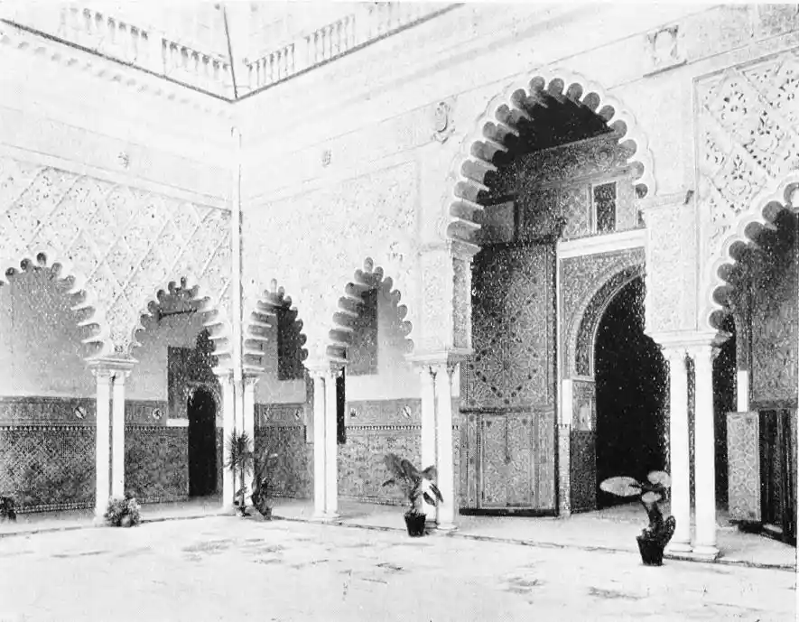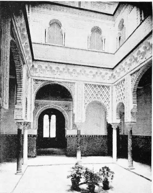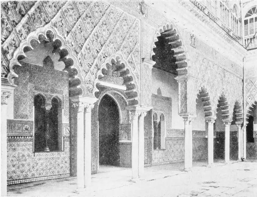 Though not a monument of oriental art, the Alcazar seems to us to have claims to rank as a specimen of Moorish architecture; for the general character of the structure was determined by the restorations effected by order of Pedro I., and these were, probably exclusively, the work of Moorish artisans, not only of Seville, but from Granada, then a Moorish city. This accounts for the resemblance of this palace to the more famous Alhambra. But the Alcazar is not to be dismissed as a mere pseudo-Moorish palace. It remains, to a great extent, the work of Moorish hands and the conception of Moorish architects.