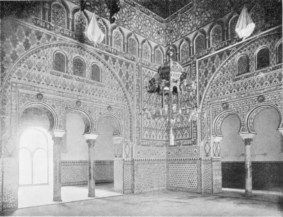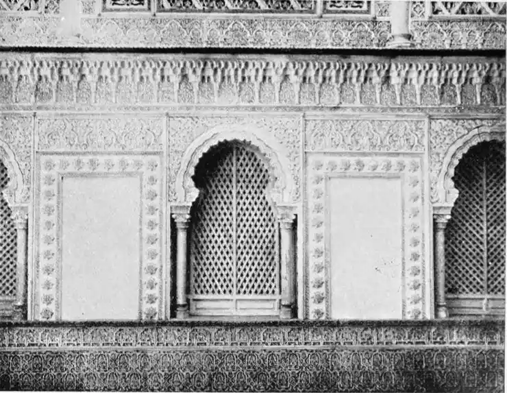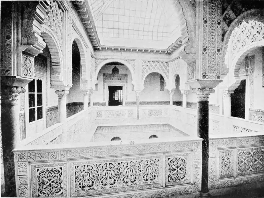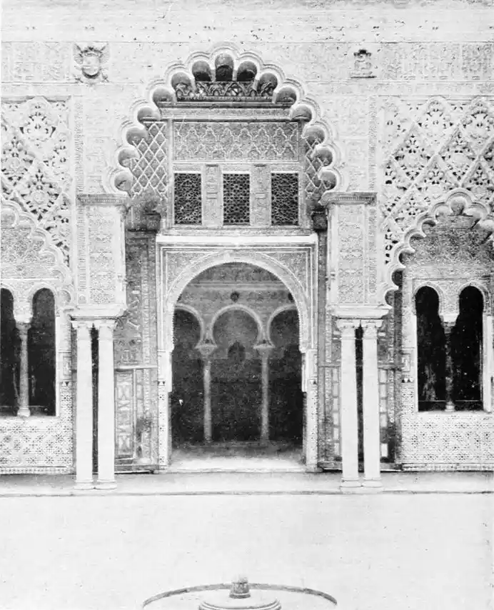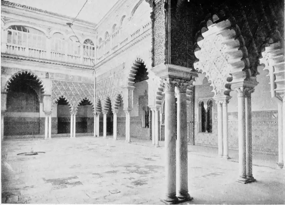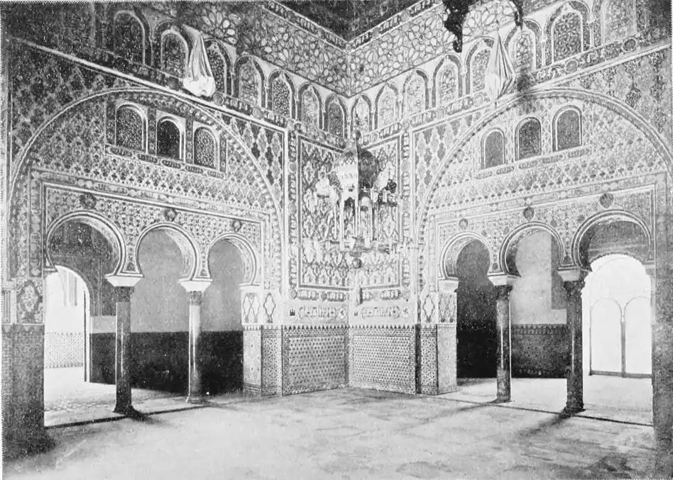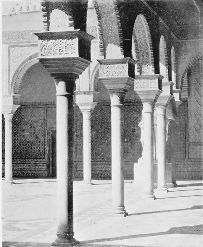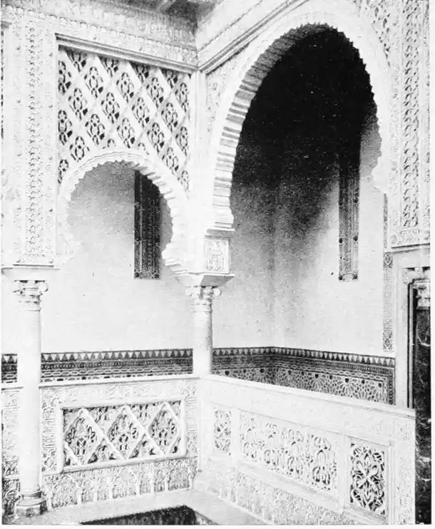 Though not a monument of oriental art, the Alcazar seems to us to have claims to rank as a specimen of Moorish architecture; for the general character of the structure was determined by the restorations effected by order of Pedro I., and these were, probably exclusively, the work of Moorish artisans, not only of Seville, but from Granada, then a Moorish city. This accounts for the resemblance of this palace to the more famous Alhambra. But the Alcazar is not to be dismissed as a mere pseudo-Moorish palace. It remains, to a great extent, the work of Moorish hands and the conception of Moorish architects.