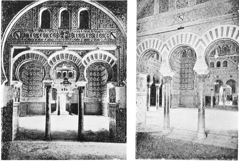 Moorish architecture was thus accepted by the conquerors of Seville both from choice and necessity. But certain important modifications in the structure of buildings became immediately necessary, owing to the difference of faith and customs. The mosque and the dwelling-house alike had to undergo some alteration. No mihrab was required, nor minaret, nor the south-easterly position; in the dwelling-house there was no need for harem, for retired praying-place, for the baths so dear to the Andalusian Muslim.{37}