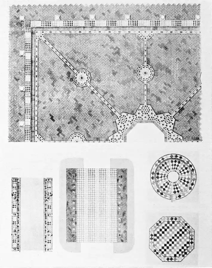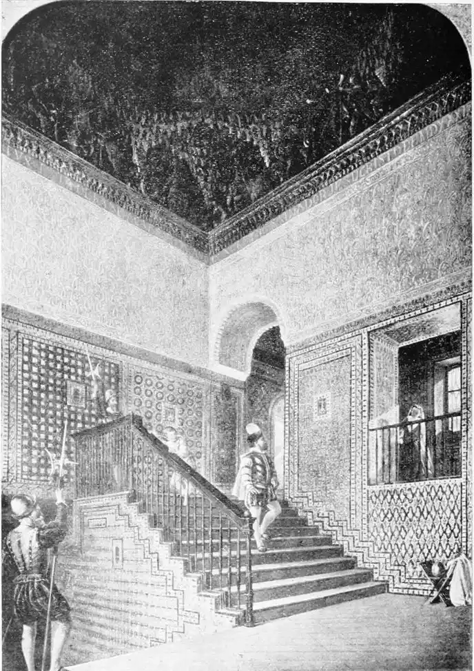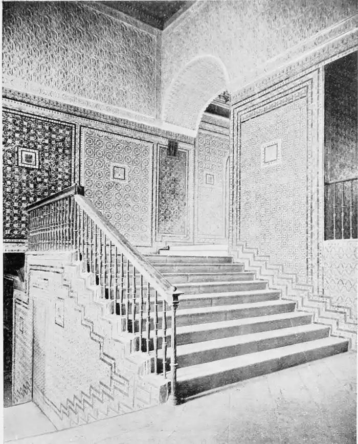 Mr Digby Wyatt (“An Architect’s Note-Book in Spain”) indicates as the two special points of architectural value possessed by the Casa de Pilatos, “the entirely moresque character of the stucco-work at a comparatively late date, and the profuse use of azulejos or coloured tiles. It is ... in and about the splendid staircase that this charming tile lining, of the use of which we have here of very late years commenced a very satisfactory revival, asserts its value as a beautiful mode of introducing clean and permanent polychromatic decoration.”