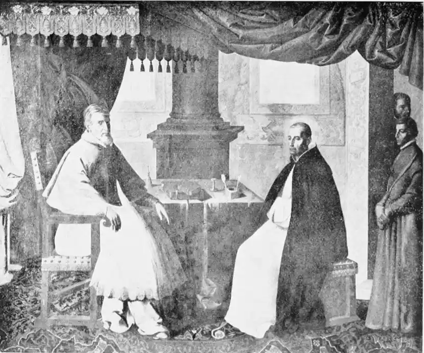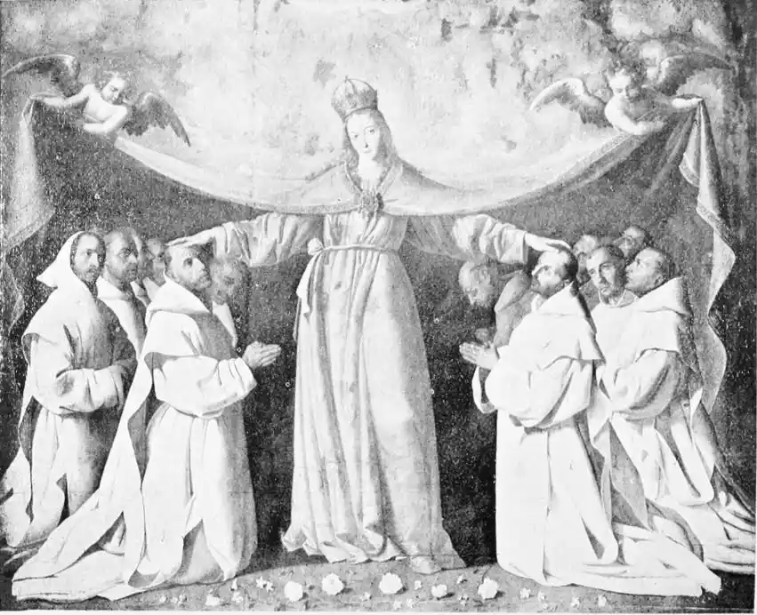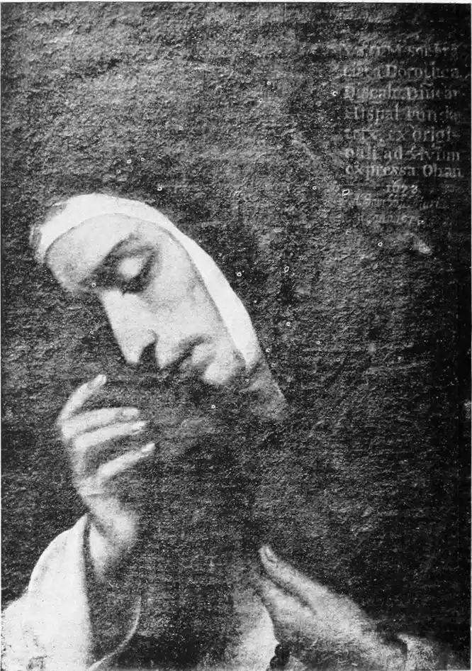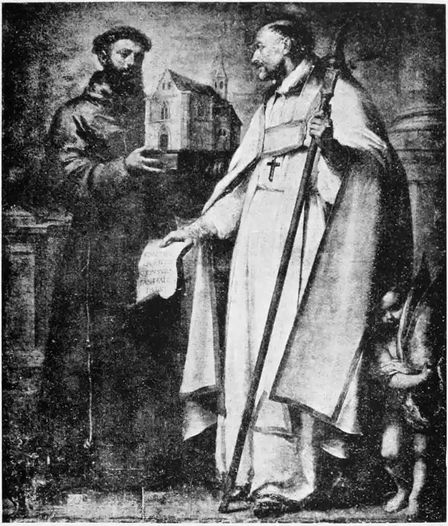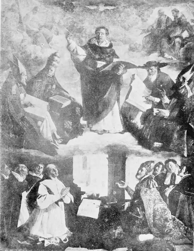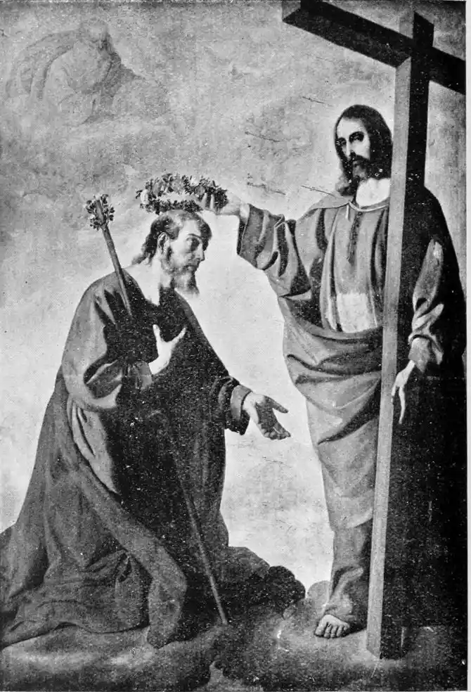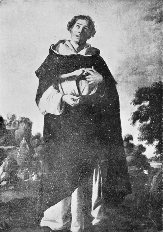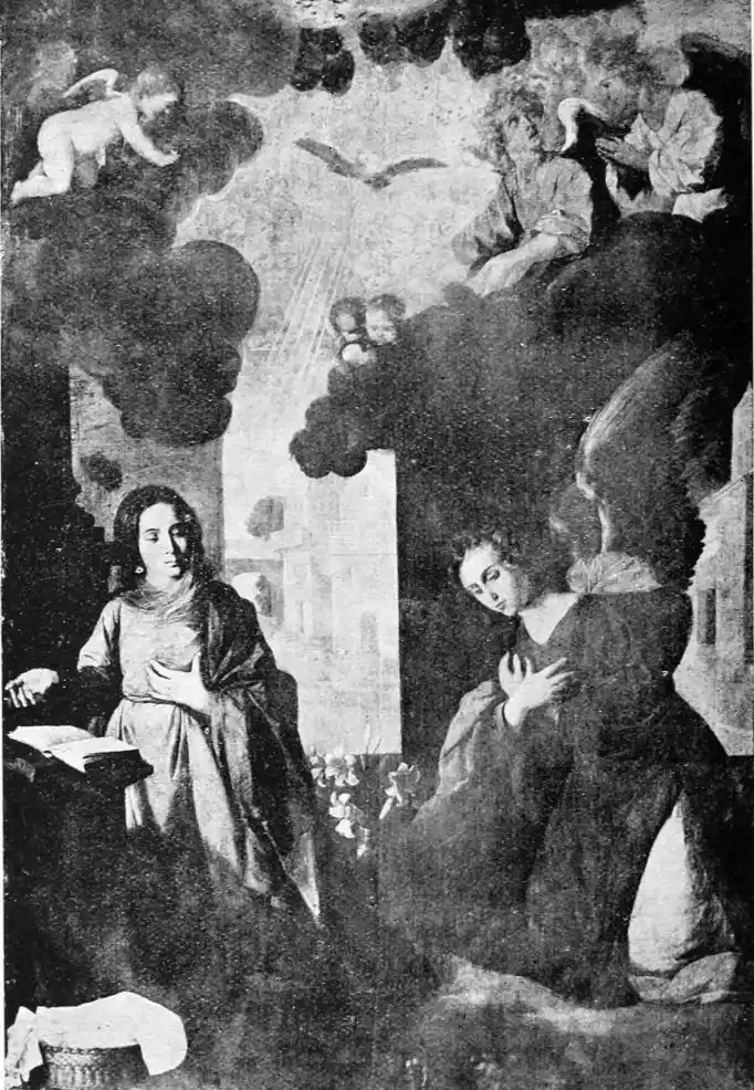 Look especially at the Carthusian pictures in the Museum, “San Hugo visiting the Monks in their Refectory,” the “Virgen de las Cuevas,” and “St Bruno conversing with Pope Urban II.” They are typical of Zurbarán’s special gift. In the first of these three pictures, which is the best, the monks clad in the soft white robes of their order are seated around a table at their mid-day meal. The aged Hugo stands in the foreground, attended by a boy-page; he has{130} come to reprove them for dining upon flesh-meat. His purple vestments give a note of colour in contrast with the white frocks of the brothers. But, as is customary with Zurbarán, colour counts for very little, and atmosphere for less, in this picture in which all care is given to formal outline and exact expression. Once only in the “Apotheosis of St Thomas Aquinas,” also in the Museo, does he give us some of that warm colour he should have learnt from Roelas, whose pupil he is said to have been. This is one reason why his figures, so true to the facts of life, do not live. But no one has painted ecclesiastics and monks quite as Zurbarán has done. His sincerity is annoying almost; for he tells us nothing that we could not have seen for ourselves; we are no nearer than a photograph would bring us to the character of these men. Zurbarán was hardly consciously an artist; and with all his sincerity, his vision was ordinary. He was a recorder and not an interpreter of life, and in gaining reality he has just missed truth.
