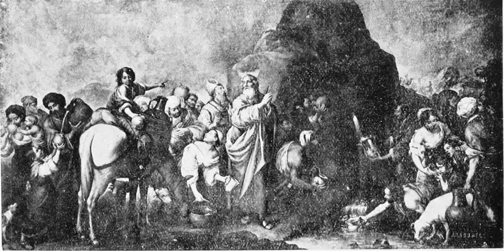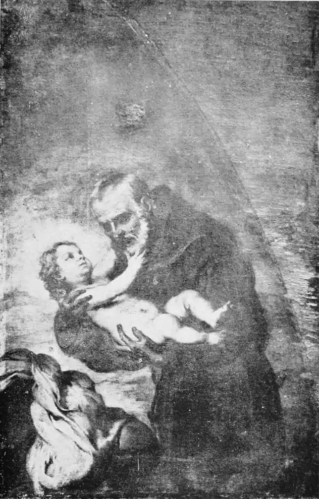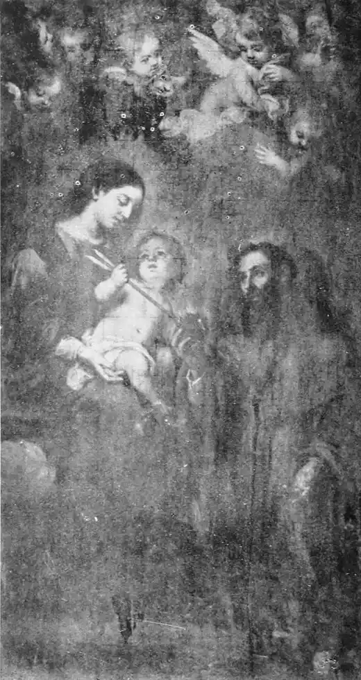 Of the eleven pictures painted by Murillo for this church, only six remain, the others having been carried off by the French. The subjects are “Moses striking the Rock,” the “Miracle of the Loaves and Fishes,” the “Charity of San Juan de Dios,” the “Annunciation,” the “Infant Jesus,” and “St John.” The first picture, depicting, as it does, the terrible thirst experienced by the Israelites, is known as La Sed (Thirst). Some critics think this is one of the finest of the master’s productions. As is usual in his compositions, the figures are all those of ordinary Sevillian types.{105} “The personality of Christ in the ‘Miracle of the Loaves and Fishes,’” says C. Gasquoine Hartley, “lacks the force of the ancient prophet, and the work as a whole is inferior to its companion picture.” The “Charity of San Juan de Dios”—representing the Saint carrying a beggar with the help of an angel—is the best and most characteristic of the six paintings. The “Infant Jesus” and the “St John” are also very fine. For the “San Juan de Dios” and the “St Elizabeth of Hungary”—El Tiñoso—(now at Madrid) together, Murillo was paid 18,840 reals; for the Moses, 13,300 reals; and for the “Miracle of the Loaves and Fishes,” 15,973 reals.