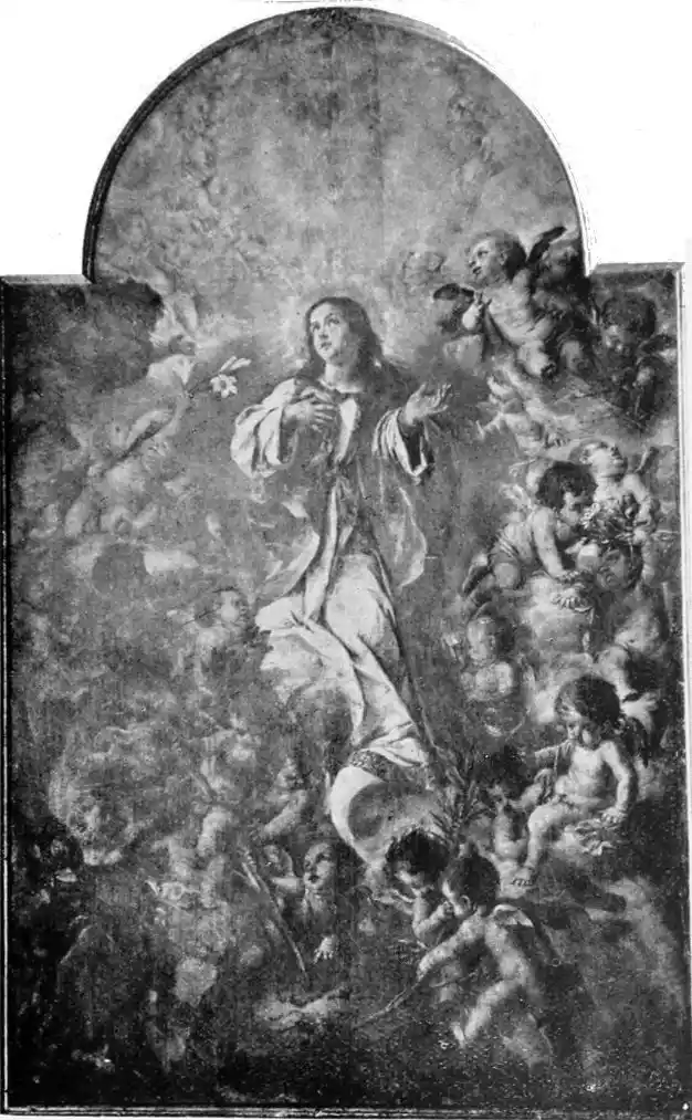 As the years passed, and art in Seville grew older, many painters trod in the steps worn by these others. It is not possible, nor is it necessary, to wait to look at their pictures; too often they exaggerate the faults of the masters they copied, and by a slavish repetition of accepted ideas—the inevitable fault of the age—they weakened still further native art. And, when we come to the next century, which gives us Alonso Cano, sculptor, architect, and painter, described admirably by Lord Leighton as “an eclectic with a Spanish accent,” many of whose facile, meaningless pictures may be seen in Seville, to the much inferior work of the younger Herrera, and to the exaggerated over-statements of Juan de Valdés Leal, in whose art Sevillian painting may be said to die, we realise into what degradation pseudo-Italianism had dragged painting.