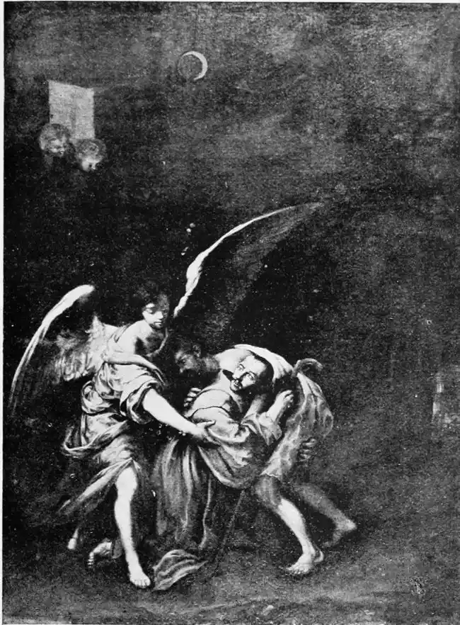 St John of God, sinking under the Weight of a Sick Man, assisted by an Angel, by Murillo.