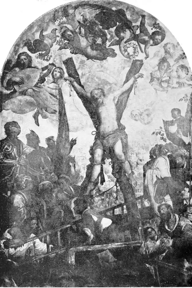 Contemporary with Campaña and De Vargas, the leaders of the Andalusian Mannerists, worked a band of painters of second, or even third-rate, talent. Francisco Frutet, like Campaña a Flemish painter who had learnt his art in Italy, and who came to Seville about 1548, is typical of these “improvers,” as Pacheco calls them so mistakenly, of the native art. His best work is his Triptych in the Museo, in which again we see the same curious mingling of Flemish and Italian types; the Christ, for instance, recalling the models of Italy, while Simon of Cyrene, who bends beneath the Cross, is nearer to the Gothic figures. Pedro Villegas Marmolejo has more interest. His quiet pleasing pictures—one is in the Cathedral, one in San Pedro—interpret Italian art with more charm, but still without originality.