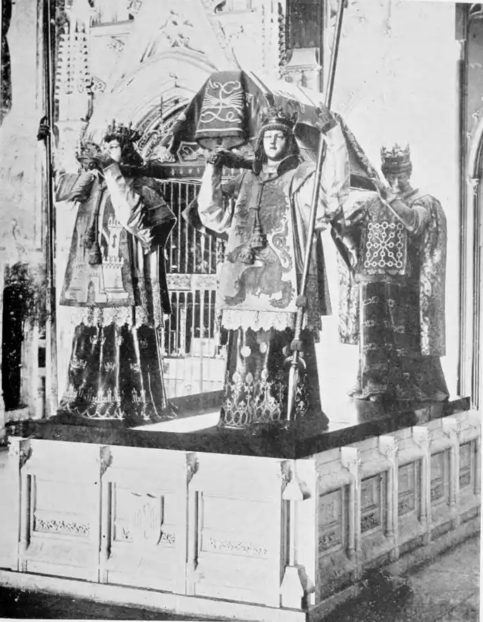 The successors of the sainted king made their home in the Alcazar, and adapted themselves to an environment created by their traditional foes. The personality which looms largest in the history of the city is that of Don Pedro I., surnamed the Cruel, or, by his few admirers, ‘the Justiciary.’ What Harun-al-Rashid is in the story of Bagdad is this ferocious monarch in the annals of Seville. Countless are the tales, the ballads, and traditions of which he is the subject. Curiously enough, Pedro enjoyed a certain measure of popularity in the country he misgoverned. He was undoubtedly a vigilant protector of the humbler classes of his subjects against the tyranny of the aristocracy, and officials, and appears to have combined a grim humour and a strain of what we should now call Bohemianism, with a tiger-like ferocity. He was fond of rambling incognito through the poorer{40} quarters of the city; and no account of Seville can be considered complete without a relation of one of his most notable adventures in the street called Calle de la Cabeza de Don Pedro.