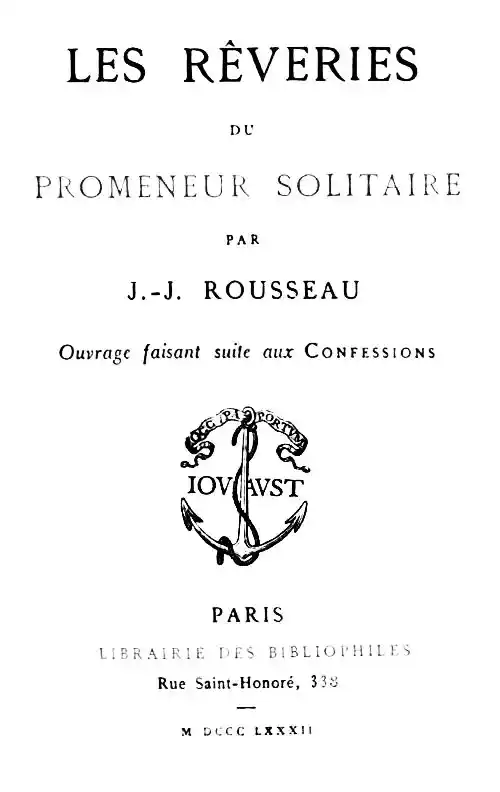Les Rêveries du promeneur solitaire, que nous réimprimons aujourd'hui dans notre collection des Petits Chefs-d'œuvre, sont comme une dernière partie ajoutée par Jean-Jacques Rousseau à ses Confessions. Aussi avons-nous cru être agréable aux bibliophiles en leur offrant cet opuscule à la suite des Confessions, qui ont paru tout récemment dans notre Petite Bibliothèque artistique, avec la belle suite des eaux-fortes de M. Hédouin.