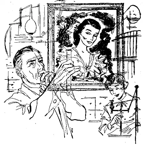 "Luke, you mustn't think that science came into existence this generation," he said. "There were men ahead of us who were just as interested in solving Nature's secrets as we are. Some of them came close to doing it. I think the man who painted this girl was one of them. I think he hid his knowledge in this painting, hid it because he did not dare reveal it. It is my hope that if I can discover his secret and perhaps add it to the knowledge of modern science, I can come up with something that may be as startling as the atom bomb, only in a different way." He frowned and a far-away look crept into his eyes. I knew he was dreaming of the future as he saw it, a better, healthier, happier world. He was just the man to make that dream come true!