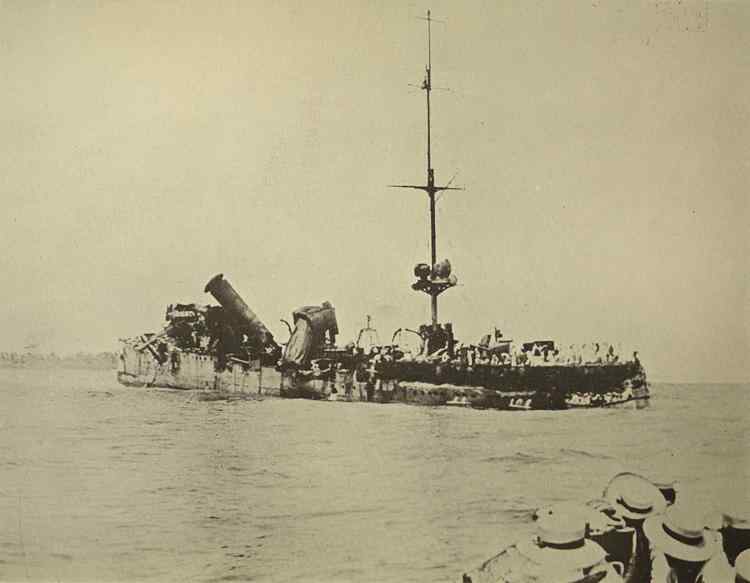 Frontispiece: THE BATTERED "EMDEN" AFTER GOING ASHORE ON COCOS ISLAND.