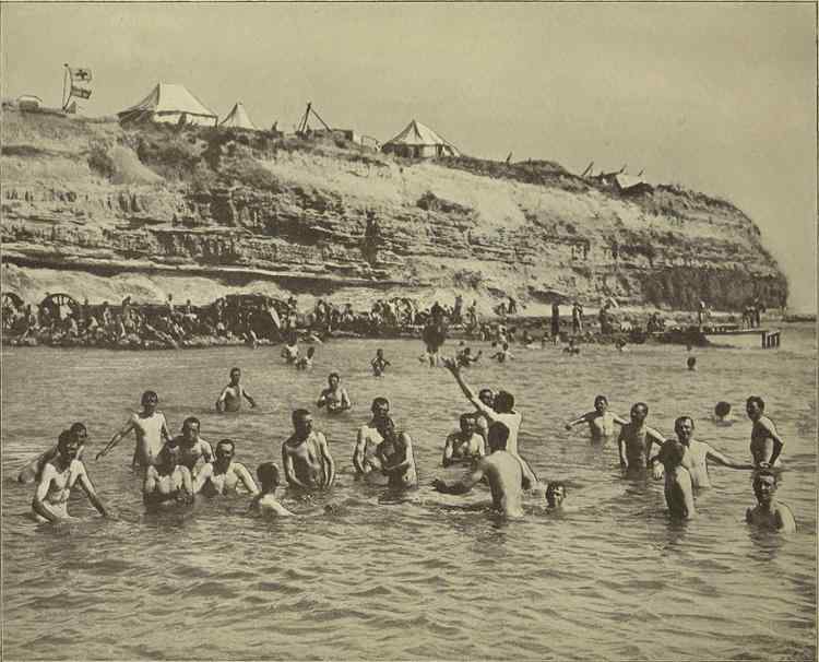 THE DARDANELLES–MEN BATHING AFTER RETURNING FROM AN ATTACK.