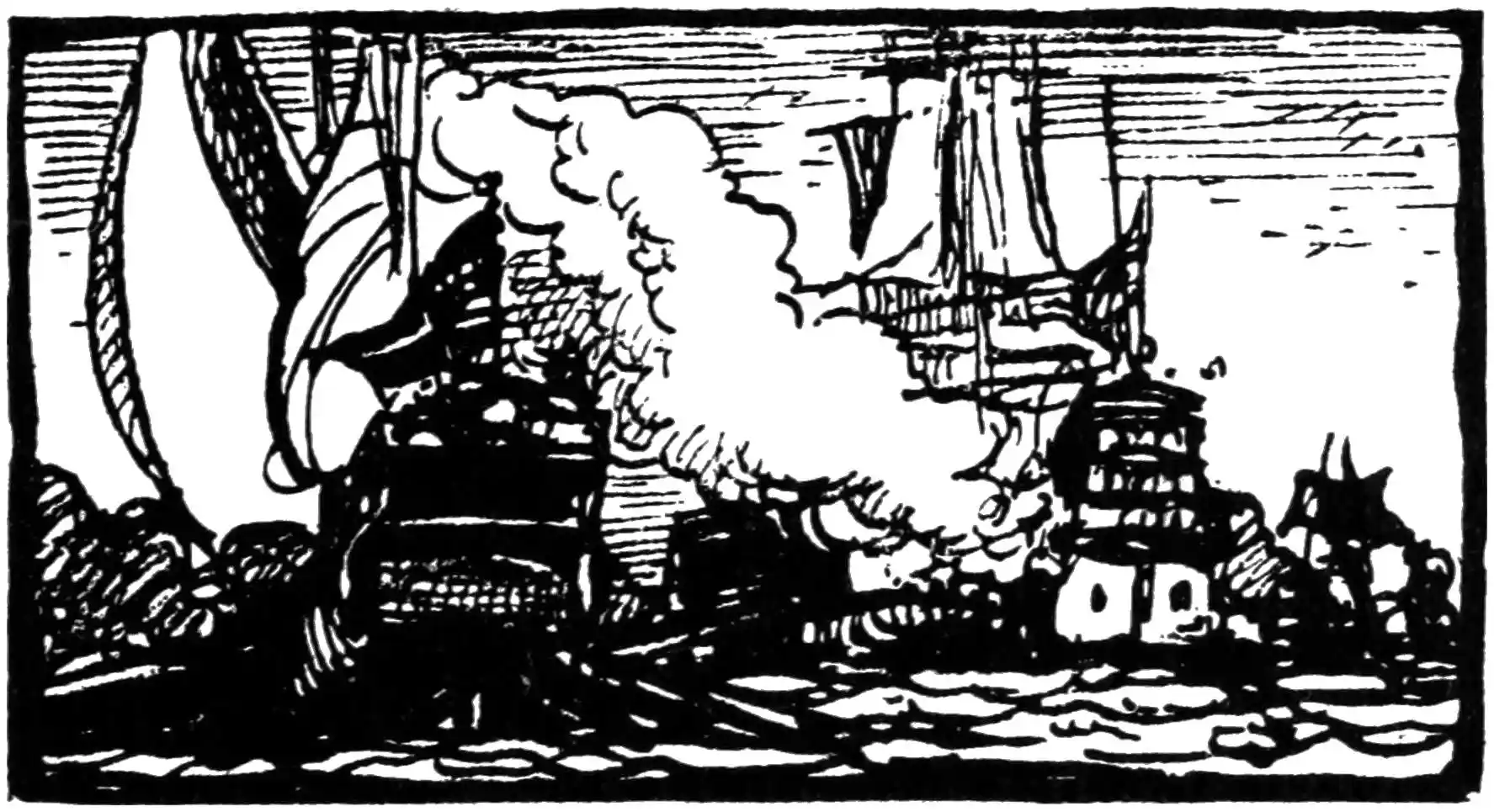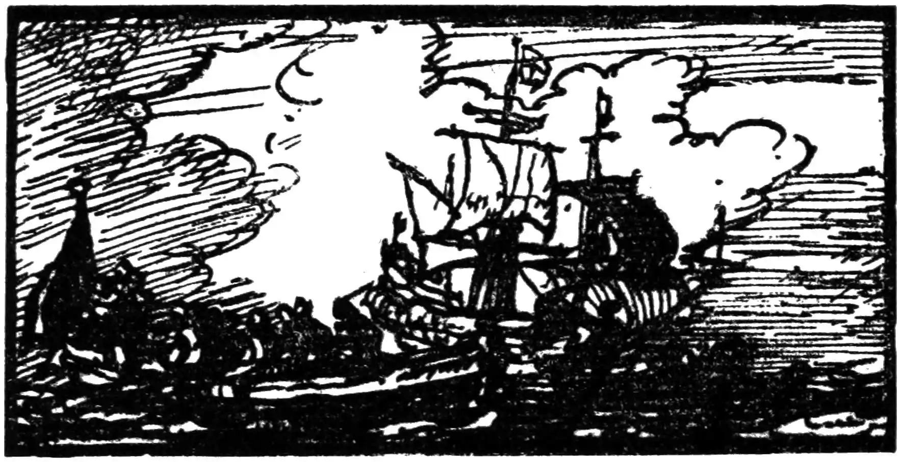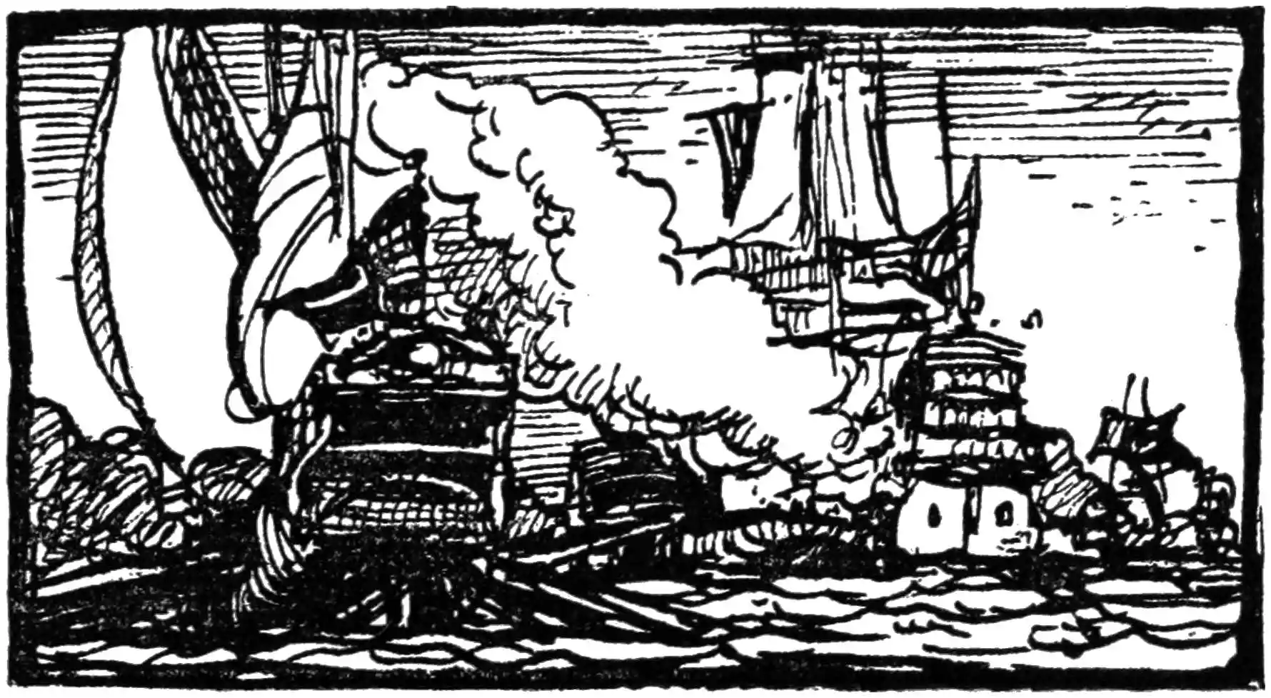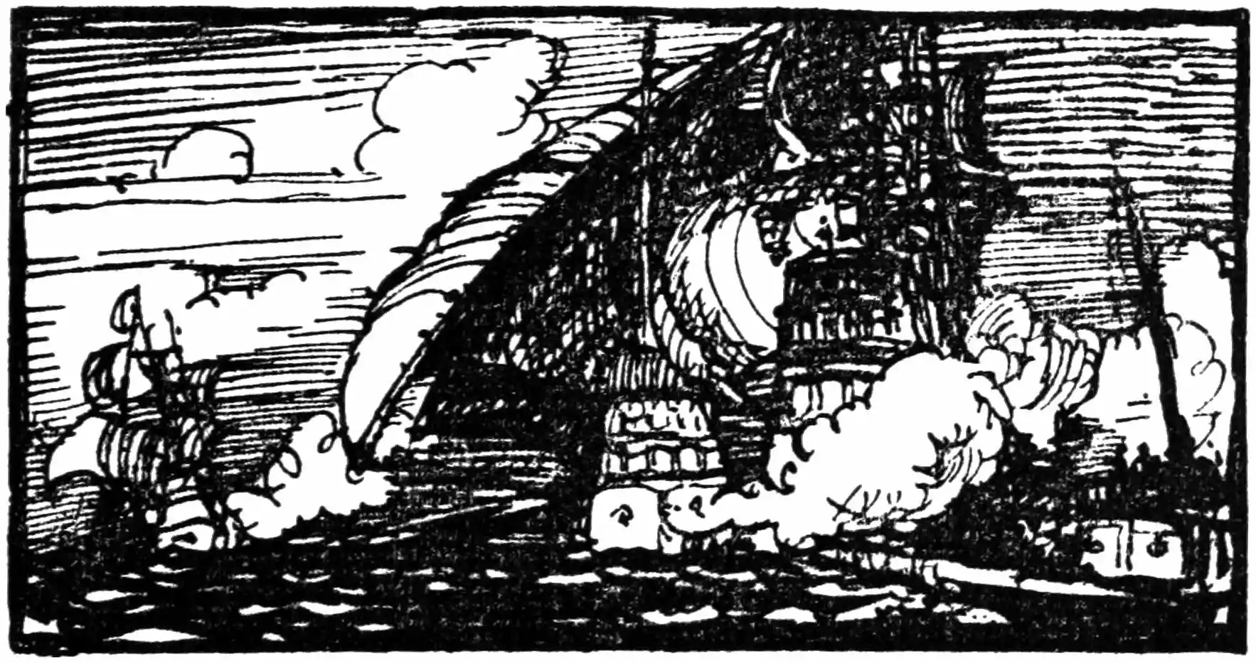 On Tuesday the 23rd, the prisoners, or those of them who were allowed on deck, witnessed the battle off the Isle of Wight, the failure of the galleasses with their countless oars, and the rescue of the Triumph, in which our first Victory and our first Dreadnought distinguished themselves. They saw, too, in the bird-like line-ahead flights of the Revenge and her consorts, their quick concentrations and dispersals, what Mr Julian Corbett has described as “the first dawn of those modern tactics which Blake and Monk were to develop and Nelson to perfect.” By the end of the day they were probably all deaf; the unknown eyewitness who wrote the Relation of Proceedings for Howard, declares that “there was never seen a more terrible value of great shot, nor more hot fight than this was; for although the musketeers