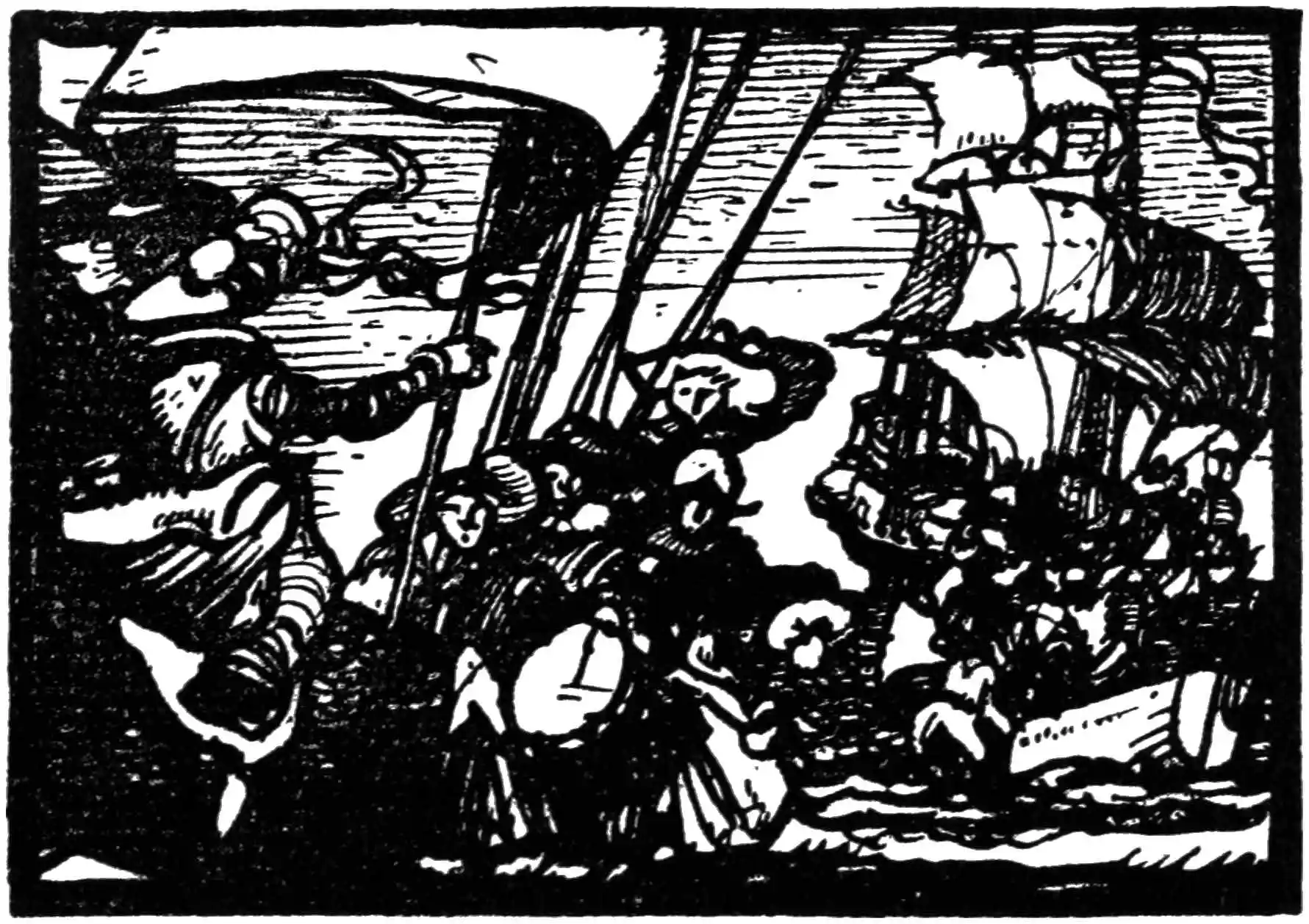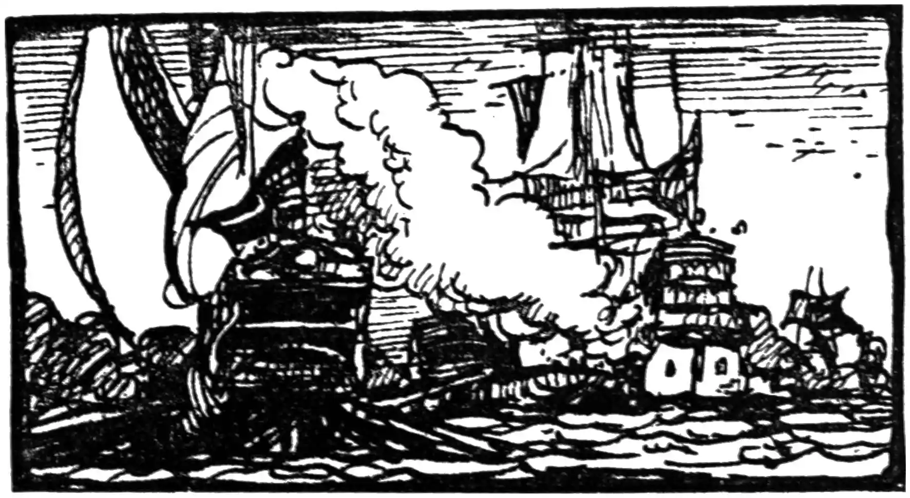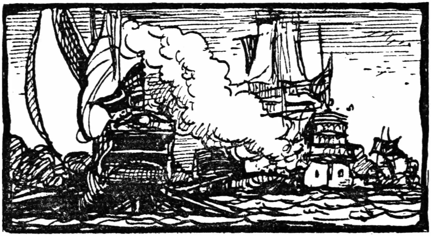 On Tuesday the 23rd, the prisoners, or those of them who were allowed on deck, witnessed the battle off the Isle of Wight, the failure of the galleasses with their countless oars, and the rescue of the Triumph, in which our first Victory and our first Dreadnought distinguished themselves. They saw, too, in the bird-like line-ahead flights of the Revenge and her consorts, their quick concentrations and dispersals, what Mr Julian Corbett has described as “the first dawn of those modern tactics which Blake and Monk were to develop and Nelson to perfect.” By the end of the day they were probably all deaf; the unknown eyewitness who wrote the Relation of Proceedings for Howard, declares that “there was never seen a more terrible value of great shot, nor more hot fight than this was; for although the musketeers