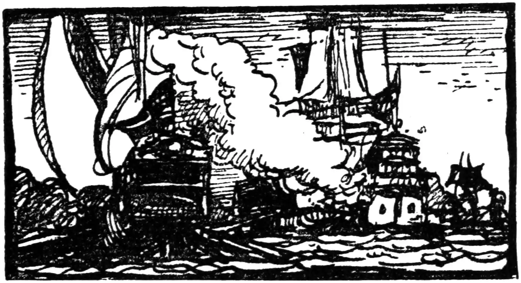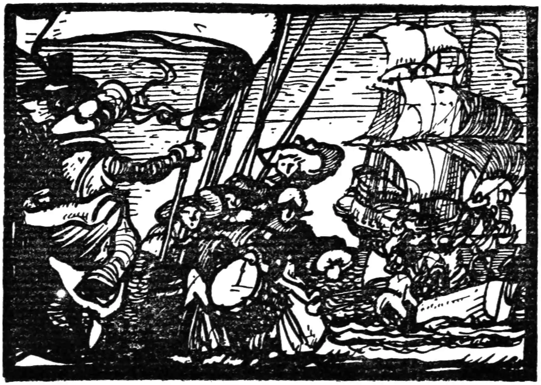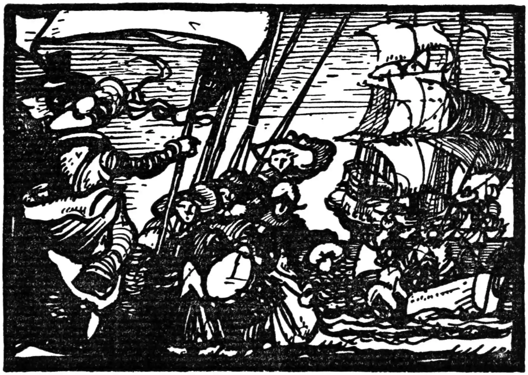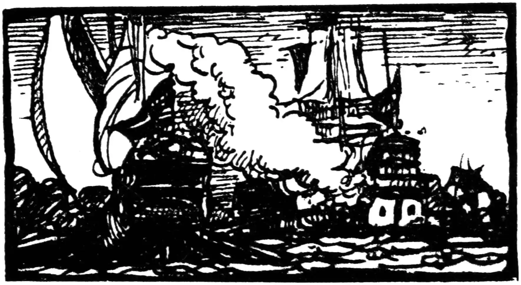 On Tuesday the 23rd, the prisoners, or those of them who were allowed on deck, witnessed the battle off the Isle of Wight, the failure of the galleasses with their countless oars, and the rescue of the Triumph, in which our first Victory and our first Dreadnought distinguished themselves. They saw, too, in the bird-like line-ahead flights of the Revenge and her consorts, their quick concentrations and dispersals, what Mr Julian Corbett has described as “the first dawn of those modern tactics which Blake and Monk were to develop and Nelson to perfect.” By the end of the day they were probably all deaf; the unknown eyewitness who wrote the Relation of Proceedings for Howard, declares that “there was never seen a more terrible value of great shot, nor more hot fight than this was; for although the musketeers