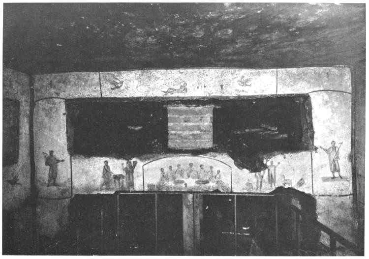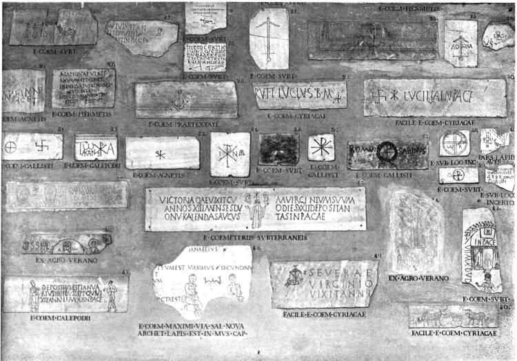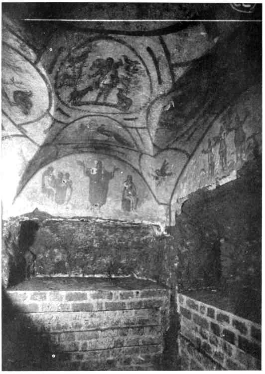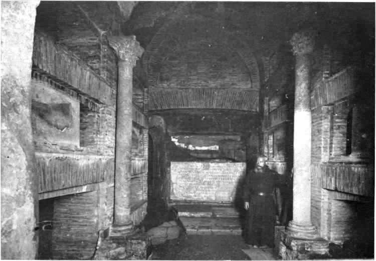[120] It was in the year of grace 1578 that some workmen digging out sand in a vineyard about a mile from Rome on the Via Salaria came upon the gallery of a subterranean cemetery, with dim paintings and many ancient inscriptions upon the walls.
