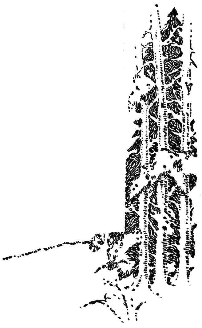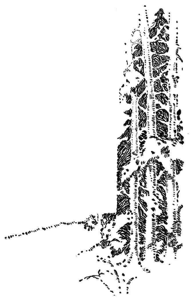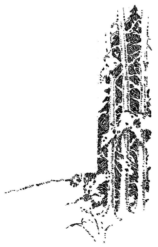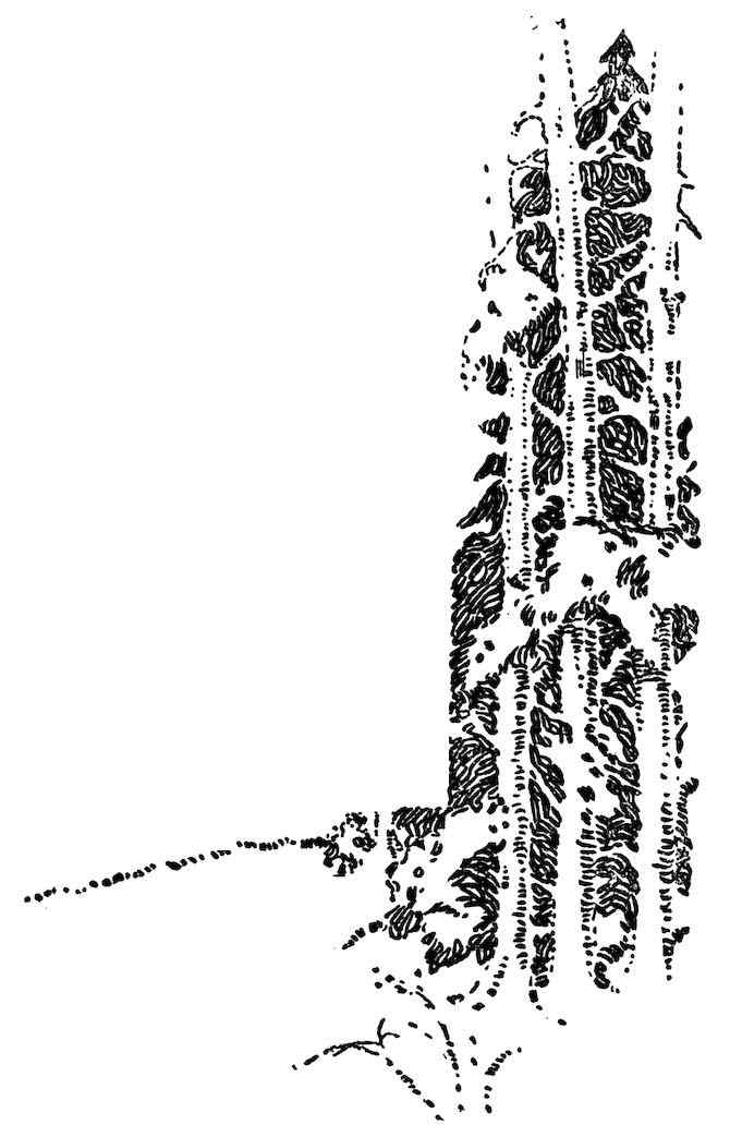 Its favorite abode was the roof of the cabin, at one corner of which, where the projecting ends of the logs were uneven, it speedily found a kind of ladder, up which it would climb until the roof was reached. Sometimes it would promenade along the ridge, and at other times mount the chimney, which it would hastily abandon, however, when a fire was lit. 92The presence of a dog always resulted in immediate flight, first to the roof, and then to the chimney; and when it came inside the cabin it was fond of jumping on a big wooden shelf above the fireplace, which served as a mantel-piece.
