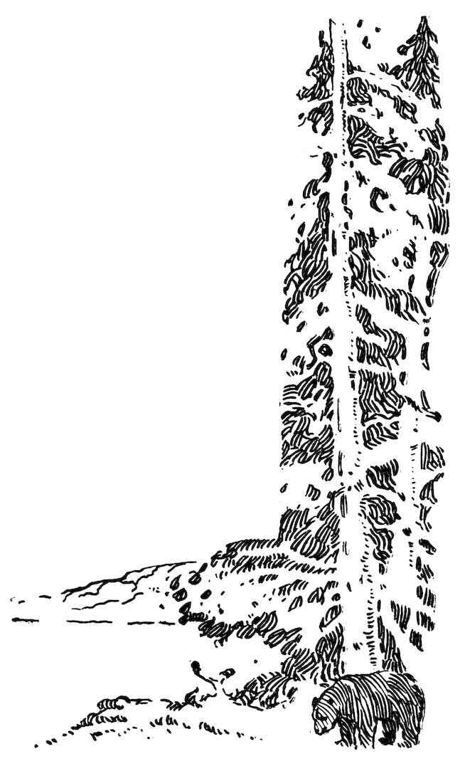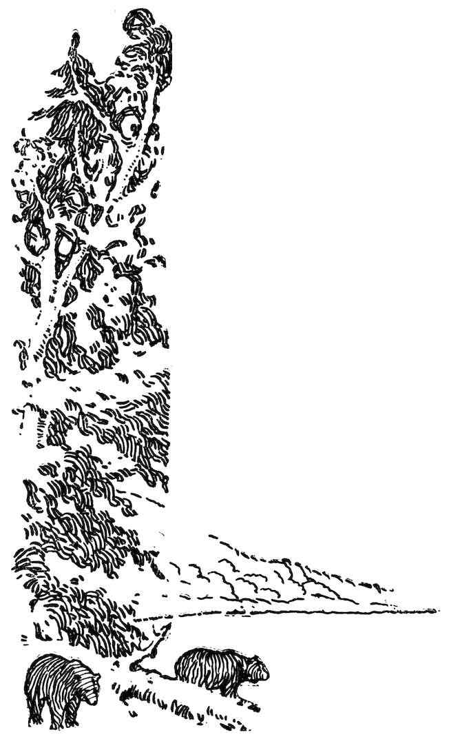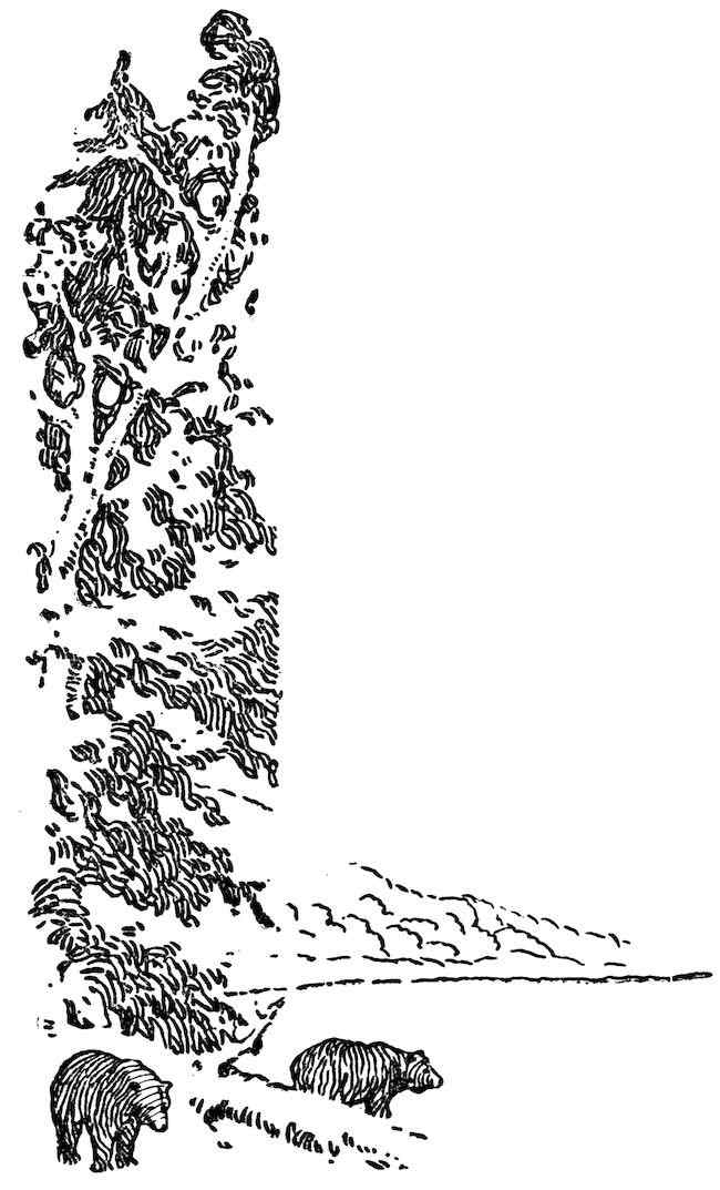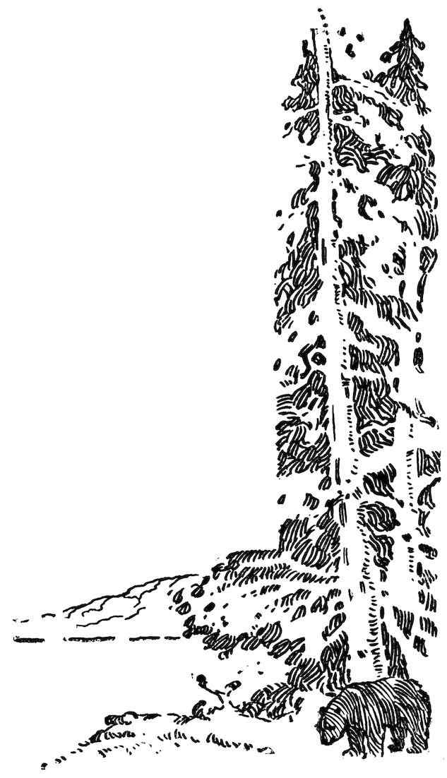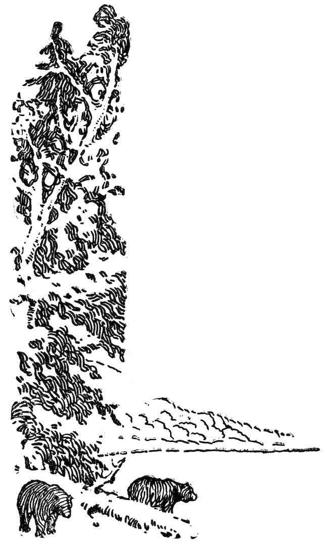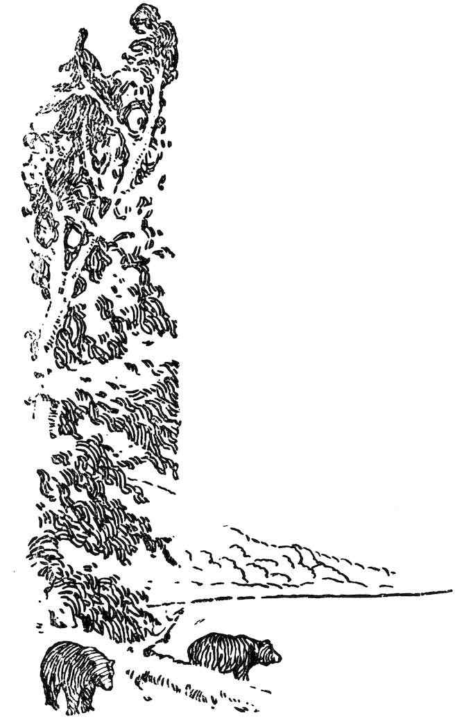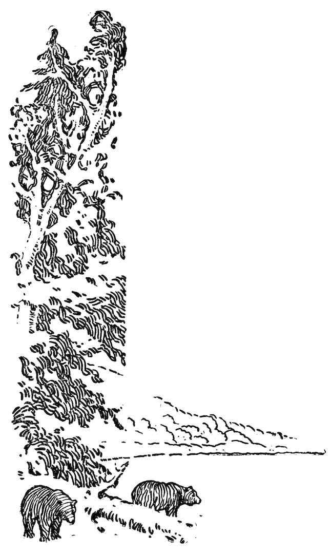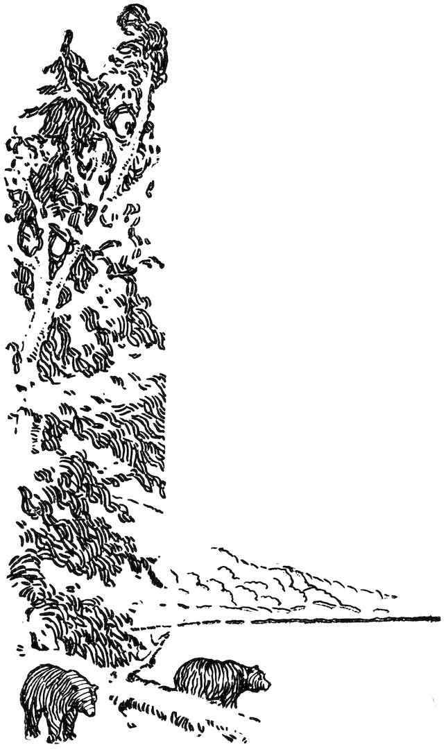 Usually the bears live almost exclusively on roots, berries, insects, and the like. In fact, there is always something grotesque and incongruous in comparing 30the bear’s vast size, and his formidable claws and teeth, with the uses to which those claws and teeth are normally put. At the end of the season the claws, which are very long in spring, sometimes become so much blunted as to be tender, because the bear has worked on hard ground digging roots and the like.