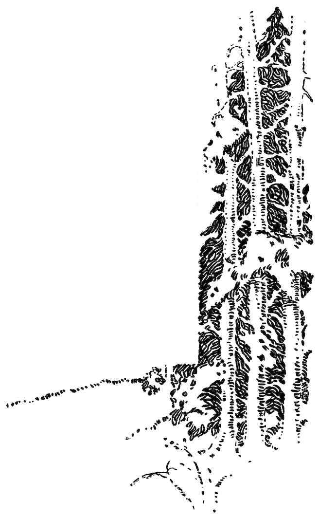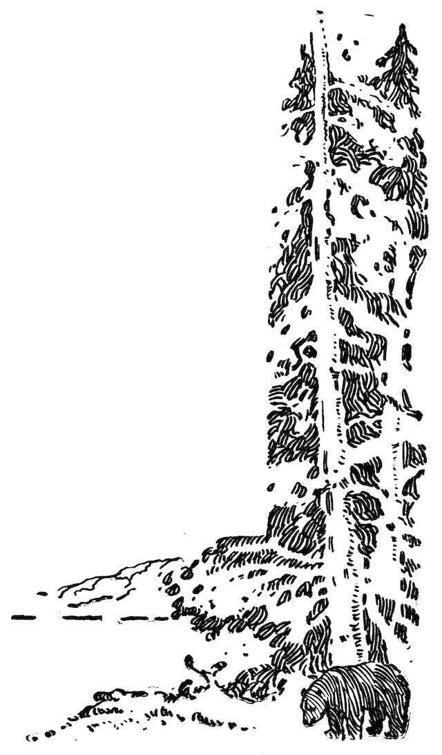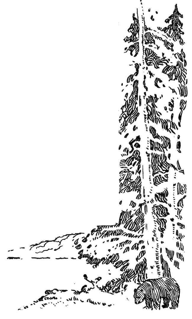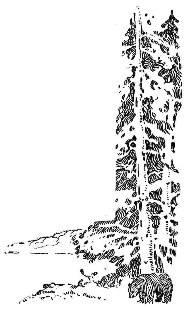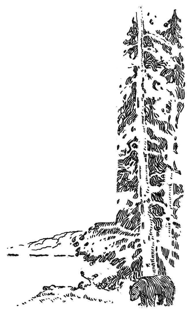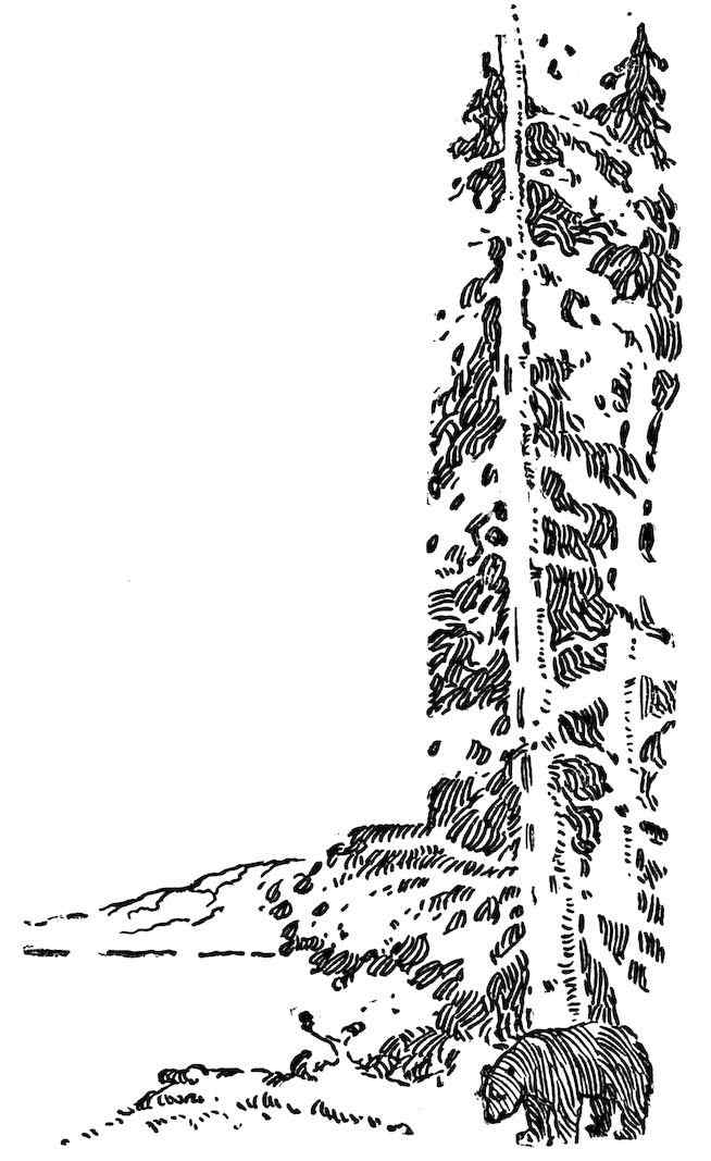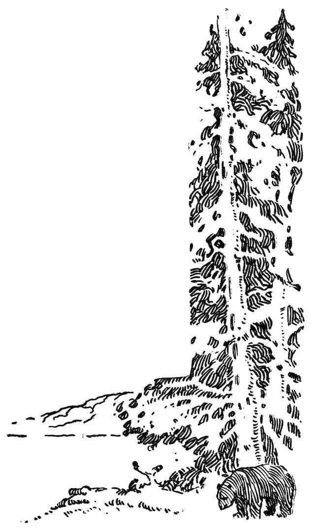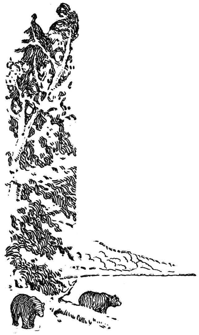 Usually the bears live almost exclusively on roots, berries, insects, and the like. In fact, there is always something grotesque and incongruous in comparing 30the bear’s vast size, and his formidable claws and teeth, with the uses to which those claws and teeth are normally put. At the end of the season the claws, which are very long in spring, sometimes become so much blunted as to be tender, because the bear has worked on hard ground digging roots and the like.