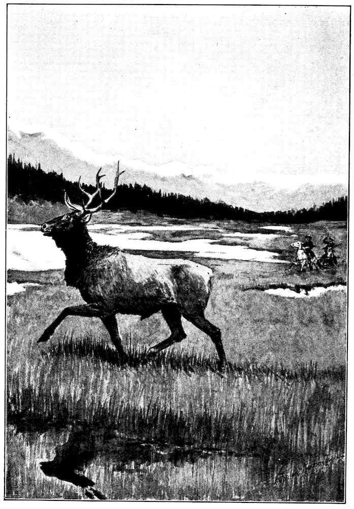 One evening in early October I was camped high among the mountains of western Montana. We were travelling with a pack-train, and had pitched our small tent among some firs by a brook, while the horses grazed in the little park or meadow close by. Elk were plentiful round about. We had seen their trails everywhere, and late in the afternoon we had caught a glimpse of a band of cows as they disappeared among the pines.