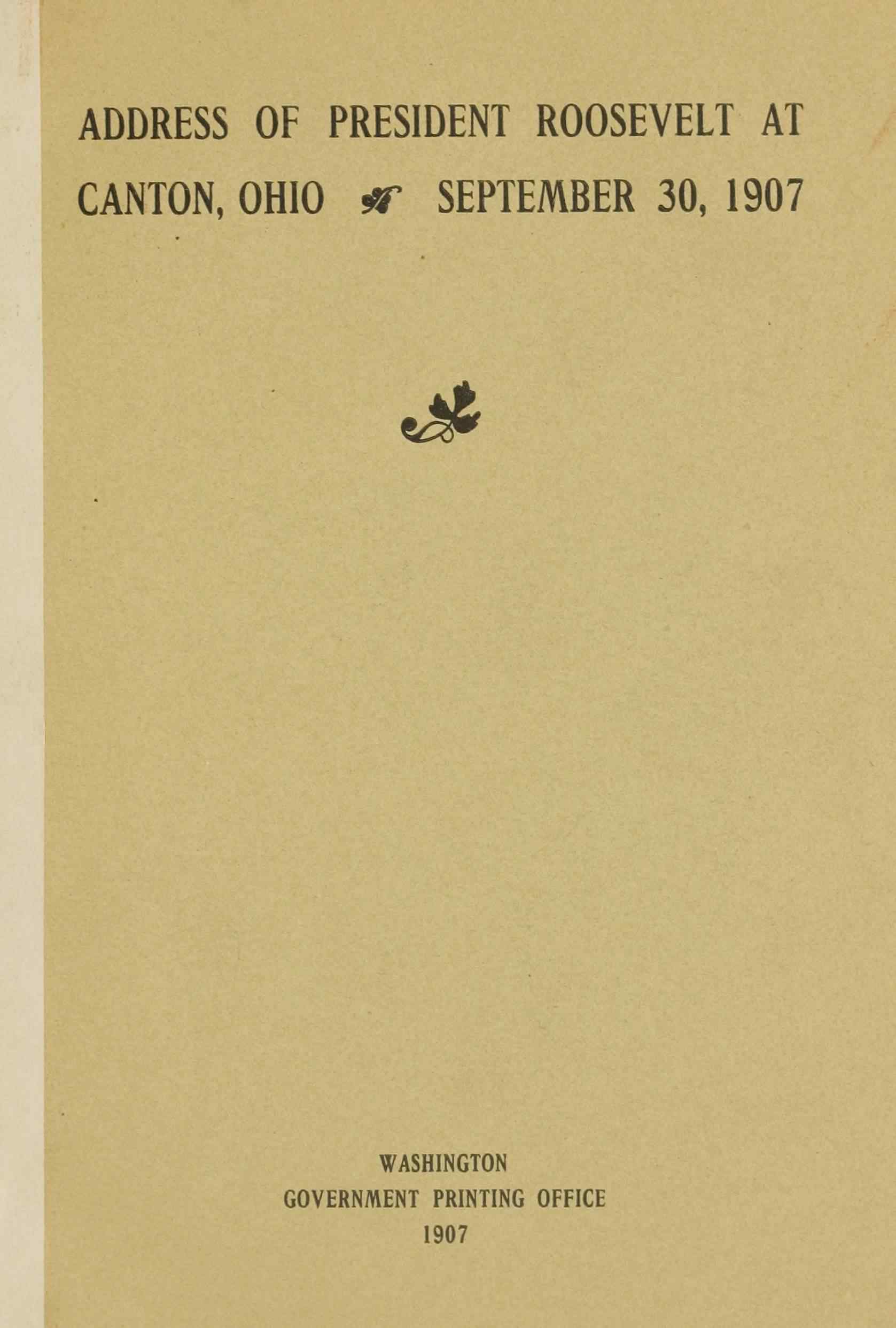 Title: Address of President Roosevelt at Canton, Ohio, September 30, 1907