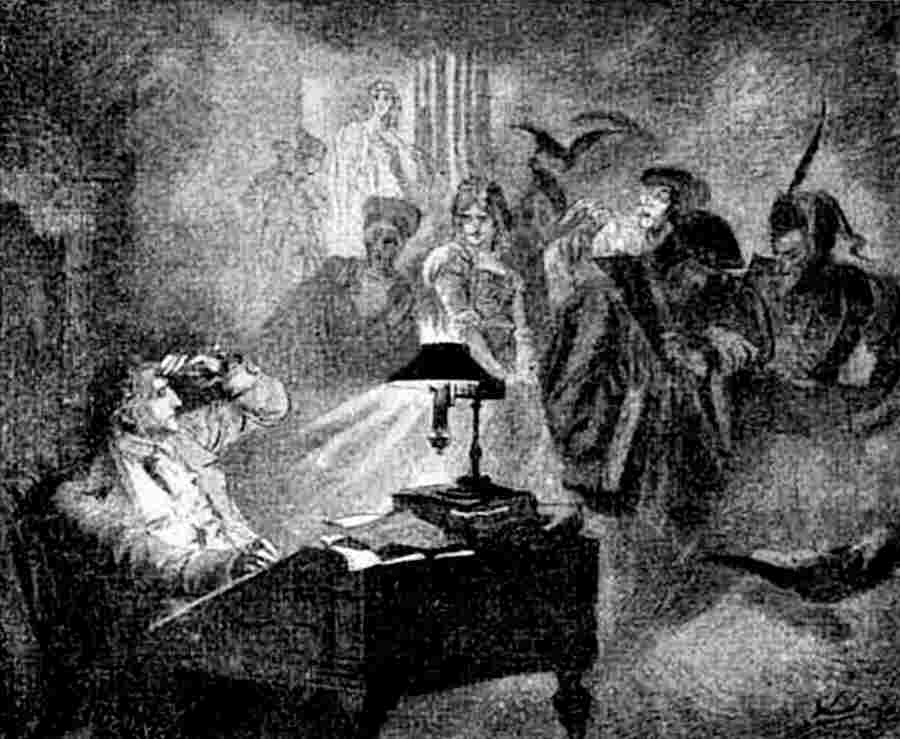 El hecho es que, por intercesión de las Madres, puede el afortunado Fausto evocar y dar vida a los dos tipos de la belleza clásica, Paris y Helena, y traerlos como personas vivientes a presencia de la corte, y hacerles representar el memorable drama amoroso, al que la poesía griega erigió un monumento inmortal. Pero Fausto, impaciente y ya enamorado de la helénica beldad, no recuerda que su evocación es un nuevo fantasma de apariencia vana, y queriendo estrechar entre sus brazos la ideal figura, rompe el encanto, y todo concluye entre sombras y vapores, que se desvanecen.