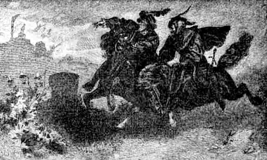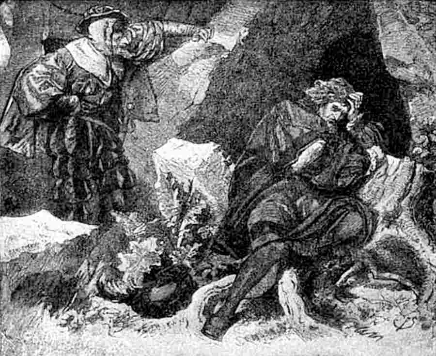 p. 364Hétenos ya en el campo de batalla, donde el poder diabólico de Mefistófeles ha congregado a los Espíritus para combatir a favor del Emperador. Ya las tropas que habían permanecido fieles cedían y se retiraban ante el empuje del enemigo; ya el Antiemperador miraba próximo el triunfo; pero las formidables legiones del infierno, evocadas por Mefistófeles, cambian el éxito de la guerra y dan el triunfo al legítimo soberano. Vuelven a la obediencia los vasallos, restablécese la paz en las provincias alteradas, y el príncipe, aconsejado por el arzobispo, se arrepiente de haber aceptado la ayuda de las fuerzas infernales, y tranquiliza su conciencia con el donativo de extensos territorios a favor de la Iglesia.