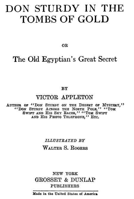 Title: Don Sturdy in the tombs of gold; or, The old Egyptian's great secret