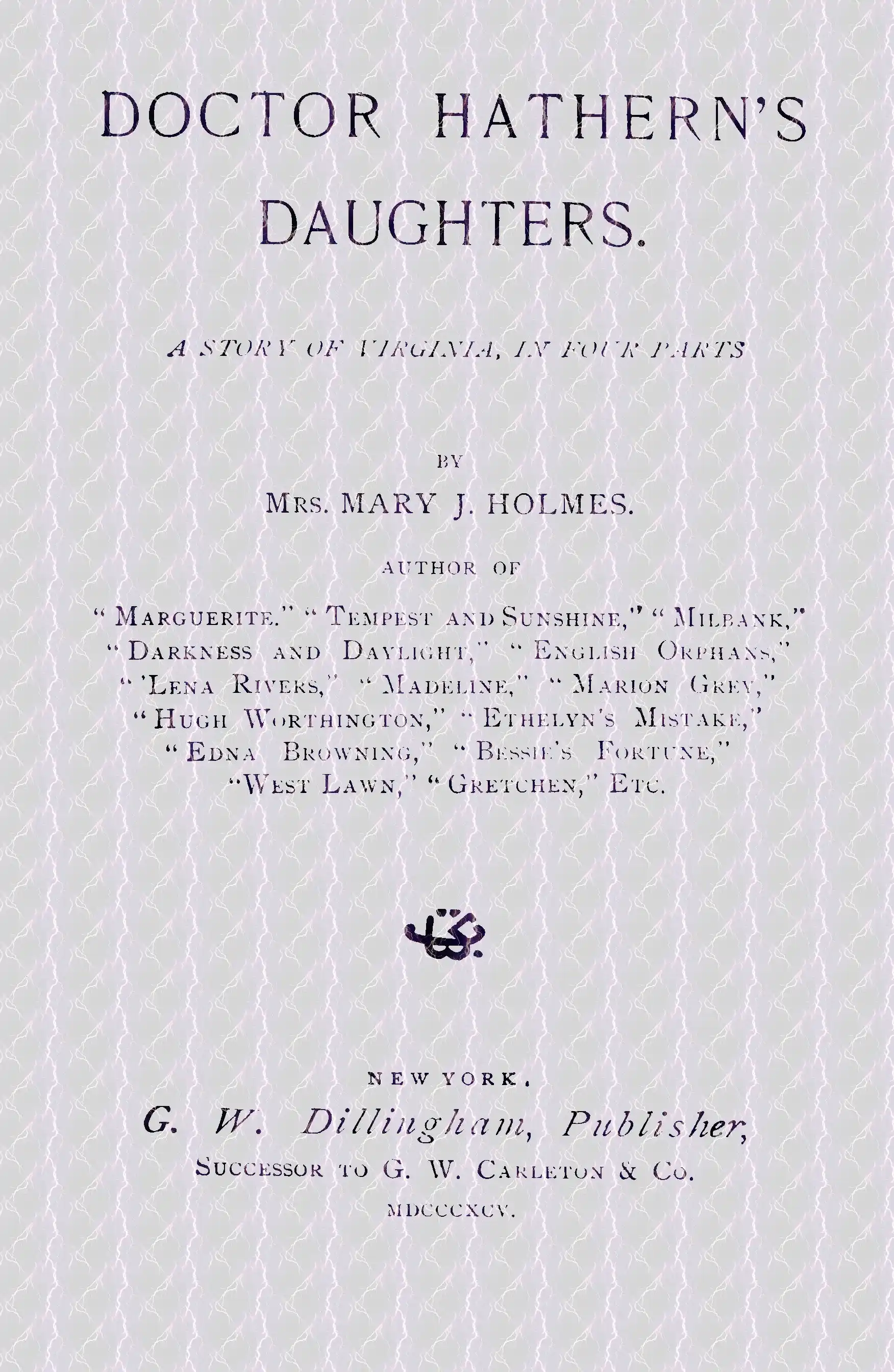 In a large, old-fashioned Virginia house, shaded with elms and covered with climbing roses, honeysuckle and Virginia creepers, two women sat one June morning, discussing the practicability of writing a story in four parts and calling it “Dr. Hathern’s Daughters.” One of the daughters was to write the opening chapters, and was to be followed at intervals by her friend, whose sobriquet was to be “The Author.” The story has been written and is now given to the public as the joint production of Annie Hathern and