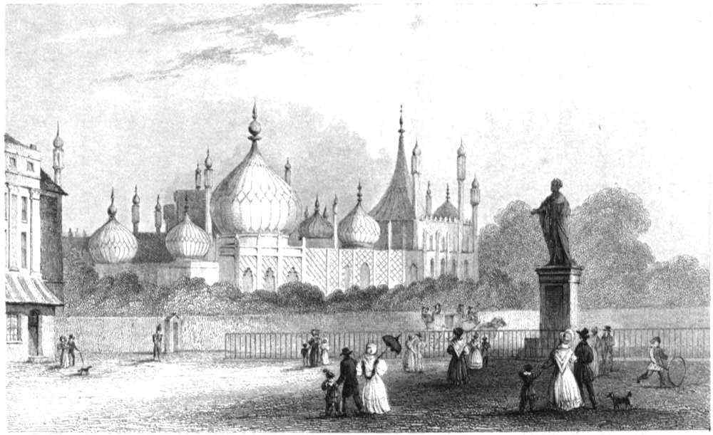 Mr. Ashton told his little boys, he should soon be ready to accompany[Pg 4] them; and Edward and Lewis amused themselves, till he made his appearance, in looking again at the new scene before them, from the windows of their sitting-room. Lewis soon espied a strange-looking building, different from any that he ever remembered to have seen before. Edward could only guess that it must be the Pavilion which they saw, with its domes and minarets. But now papa’s voice was heard from the hall, and the boys lost no time in obeying the summons.