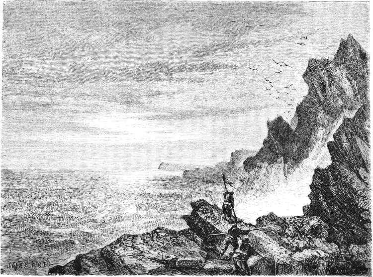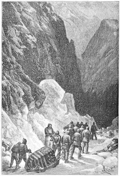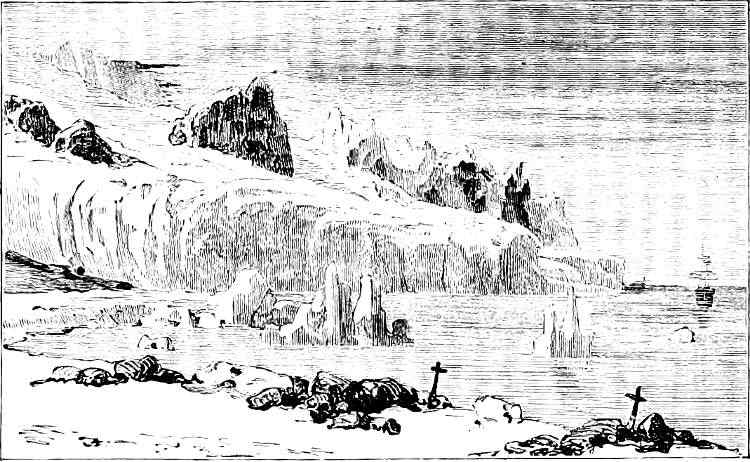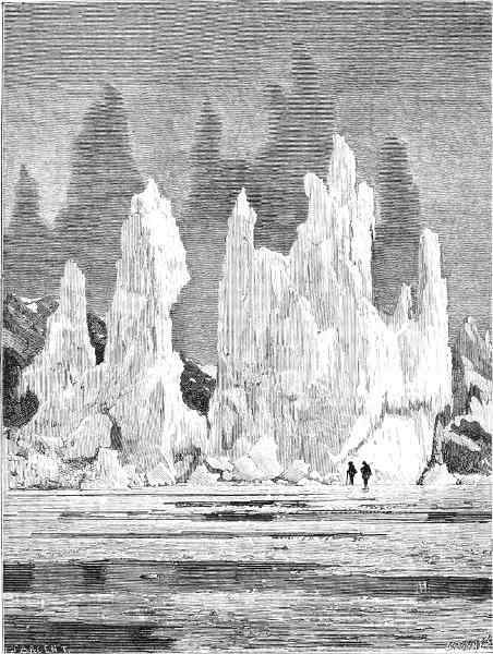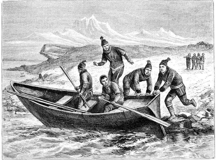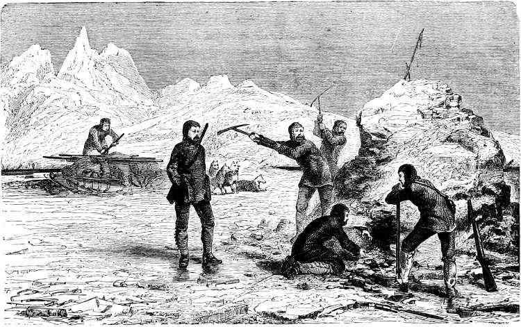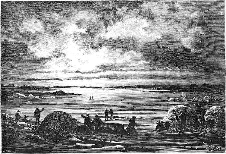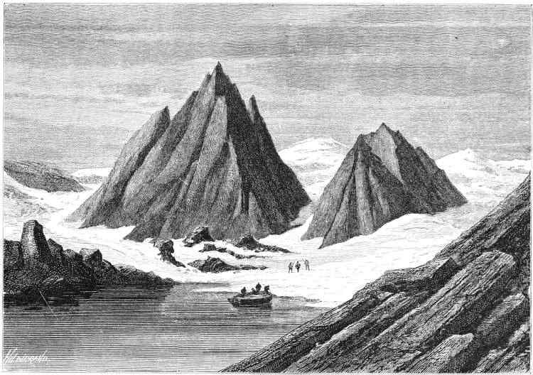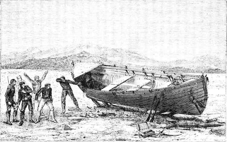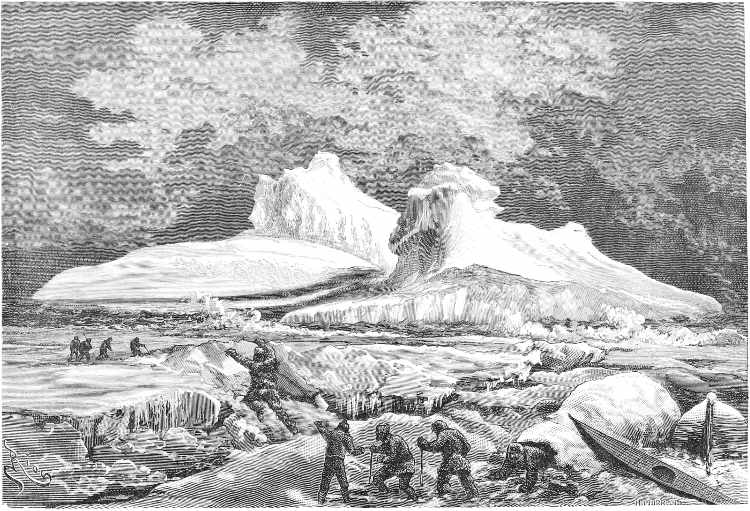About June the warm summer began to assert itself, and in the rays of the sun their icehouses melted away, like the baseless fabric of a vision. So the sledging-party last spoken of adventured across the ice to Polaris Bay, taking with them a life-boat as a precaution (for the ice might at any time have broken up), and a supply of provisions for the use of the North Greenland expedition. This work done, they returned to the ship, leaving behind them two officers and three men, who pushed up Petermann Fiord for about eight miles, until arrested by the impenetrable barrier of a huge glacier.