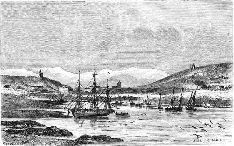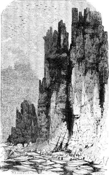 The ice gradually breaking up before a strong south-west wind, the two ships crossed Scoresby Bay, which was perfectly clear, but rolled with a heavy sea. As they approached Cape Frazer, they were buffeted by a terrible gale, and put in to Maury Bay, anchoring among a quantity of grounded ice. Three days were spent in arduous efforts to double Cape Frazer,—one of the bêtes noires of Arctic navigators, because it is the meeting-point of the flood-tides, north and south, one from the Polar Ocean and the other from the Atlantic,—and Cape Hayes, the boundary-mark of the channel. Then the voyagers, with glad hearts, passed into Smith Sound; and hugging the shore as closely as was safe, arrived on the 29th at Prince Imperial Island, in Dobbin Bay, “every one heartily thankful to be out of the pack, clear of the straggling icebergs, and for the ships to be secured to fixed ice once more.”