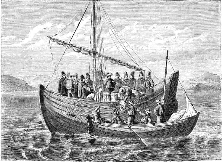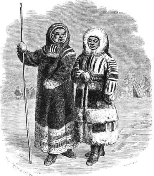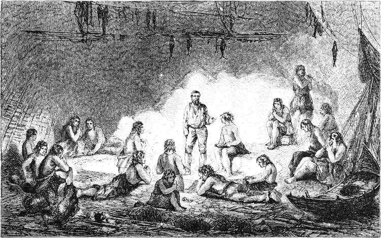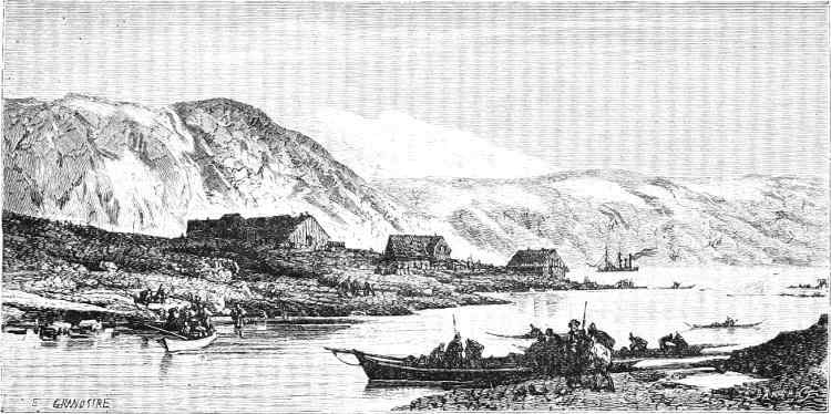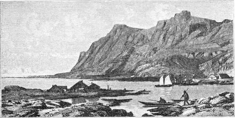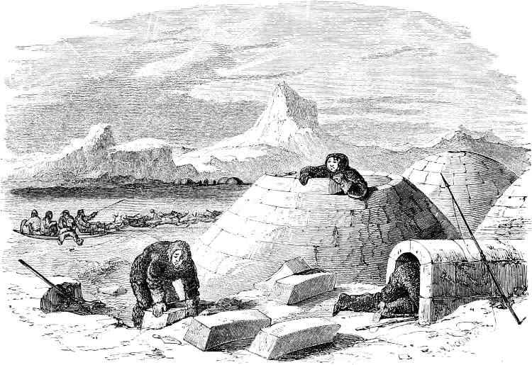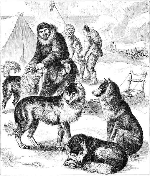 On the 29th she was off Hakluyt Island, and steered for Bardin Bay in Whale Sound. On entering the bay, a summer tent could be seen, and some Eskimos, with their dogs, running to and fro, evidently with the view of attracting the attention of the visitors. Captain Young accordingly landed, with some of his officers, and accompanied by Christian, his Eskimo[337] interpreter. The natives met them with the utmost confidence and fearlessness, assisting to haul their boat up on the shore. They were ten in number, and all members of one family. Food appeared to be plentiful with them, but they were profuse in their thanks for some walrus-flesh given by Captain Young. Their manners were frank and communicative, and they showed considerable vivacity, rejoicing over the results of a very good hunting season. Neither European ships nor white men had they seen for years; but they said that an old man, who, with his family, inhabited Northumberland Island, told of two ships which had passed to the northward “last summer.” How lonely must be the life led by these poor savages! Never gladdened by the sight of a sail; but, year after year, shut up in their frozen solitudes, and without any other object or purpose before them than to obtain just enough food to avoid a premature and miserable death!