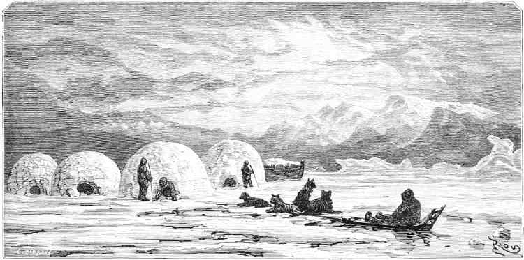 | The land of the Eskimos—Range of the so-called Arctic Highlanders—Danish settlements in Greenland—Upernavik described—Jacobshav’n—Godhav’n—Their Eskimo inhabitants—The Moravian Missions—Characteristics of the nomadic Eskimos—Their physical qualities—Their mode of dress—An Eskimo hut—The Eskimo kayak, or canoe—Their weapons and implements—Hostility between the Eskimos and Red Indians—Eskimo settlement at Anatoak—Eskimo singing—Food of the Eskimos—Dr. Hayes’ intercourse with the Eskimos—The story of Hans the Hunter—The Eskimo dogs—Anecdote of Toodla—The Eskimo sledge—Equipment of the sledge—Equipment of an Eskimo hunter—General character of the Eskimos | 175–196 |