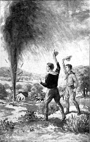 But suddenly a burning tree, almost uprooted by the explosion, toppled across the ditch, and before Tom or any of the others could get to the spot, the fire had taken hold again, and was rapidly spreading. All their work was wasted, and the fire was a good deal nearer the well than when they had started!