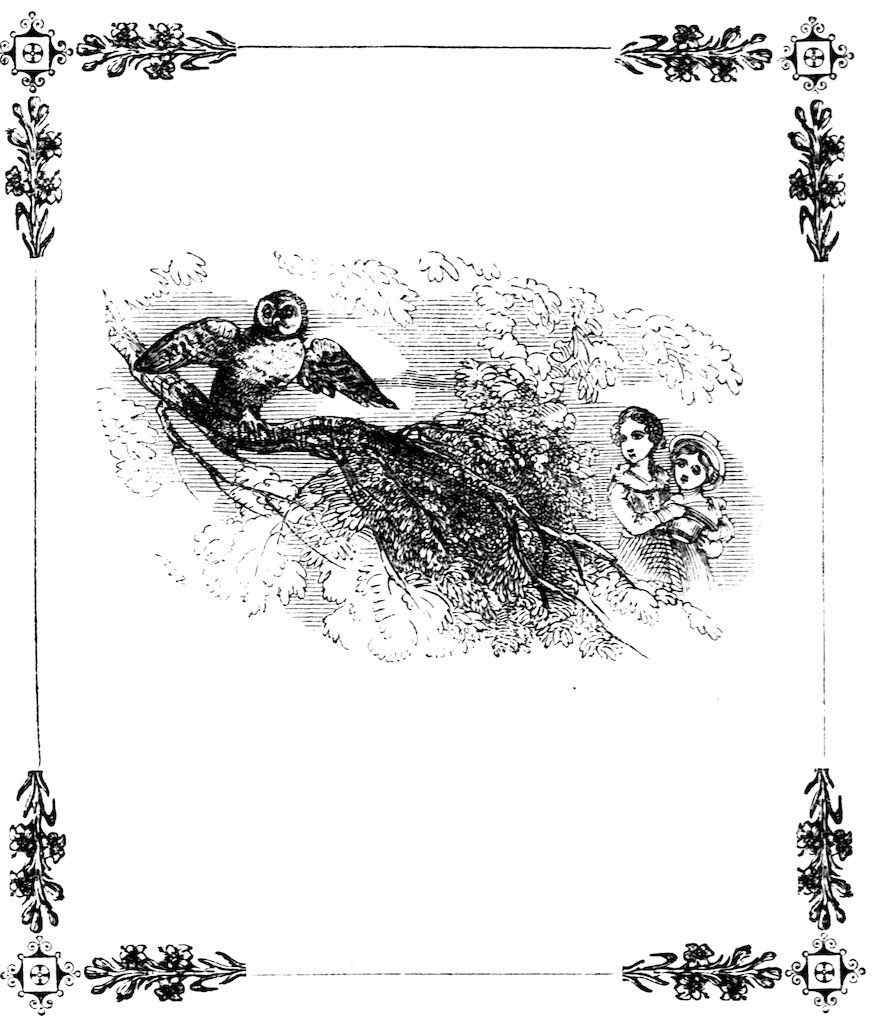 “Yes, once, a long while ago, when I was at play in the wood. I was going to hide in the trunk of an old tree, but when I put my head in, I 8heard such a noise, and looking up, I saw a large owl: he flapped his wings, and looked so fierce, that I ran away; and mamma told me a great deal about owls, when I got home.”