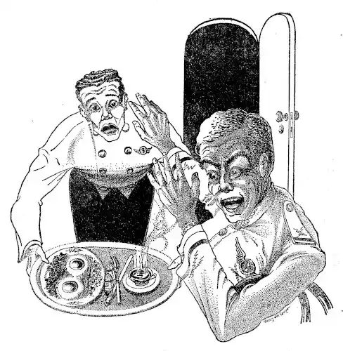 "Don't," snorted Hanson, "be a donkey, Sparks! Whoever heard of a radioman with a sense of honor? Get word to him. An' make it snappy, too. He comes on in half an hour, an' I don't want he should pull any boners in front of Cooper. G'bye, now!"