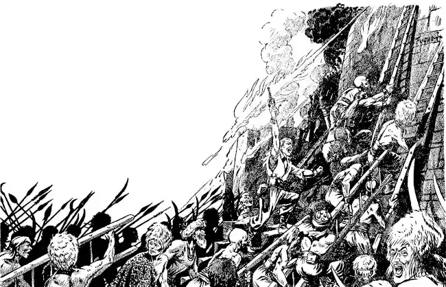 A wave of howling men swarmed up the wall.