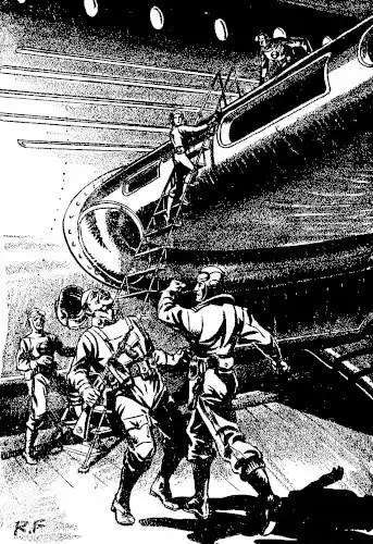 His precious portfolio securely gripped in a bronzed fist, he strode to the gangway, stood there blinking momentarily in the pleasant sunlight of Earth. Then a warm hand was on his shoulder, and a friendly voice greeted him. The voice of his superior, Dr. Wade Bryant.
