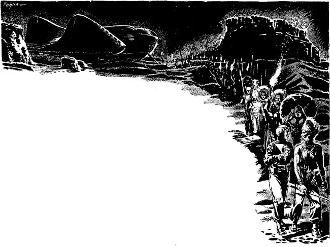 "Then," Kang promised him, "you shall surely die. And as for your city—" He paused and gestured toward the visionplate. Words were needless in the face of that which might there now be seen. The silver tube of the Liberty, shimmering faintly in the atmosphere of Magog, surrounded with its impenetrable force-shield, flying supremely aloft above the capital city, coming to sedate rest directly over the citadel. "There is your answer, Borisu. The decision is yours. There is little time in which to make it. Speak, or—"