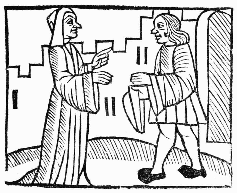 Quant le beau doulx fut hors de la dite tour il s’en vint tout droit vers le chasteau & trouva la dame/ et les damoiselles et moult humblement les salua. Quant elles le virent elles furent fort esbahyes comment il luy avoit esté possible de sortir de celle grosse tour/ et luy dirent. Chevalier vous avez bien acomply l’une des troys choses a vous enjointes puis le festoierent honnorablement & le menerent en ung jardin le plus bel qui oncques fust veu. Cestuy jardin estoit grant & spacieulx/ & estoient les murailles de fin albastre poli/ & avoit ceste dite muraille quinze toises de haulteur & six d’espesseur. En cestuy jardin avoit plusieurs nobles arbres fort odoriferans comme cypres/ romarins/ lavendiers/ rosiers/ esglantiers/ et plusieurs sortes d’erbes tresfort joyeuses et odoriferantes. Et certainement je croy que celuy qui l’avoit fait avoit l’entendement angelique/ car il n’est possible a nature humaine de faire mieulx. Au milieu de cestuy jardin y avoit ung buysson de esglantiers fleuris de espines & de romarins/ lequel estoit si espés que on n’y eust sceu a grant peine bouter le doy dedans. Et oultre il estoit si poignant que on n’eust osé bouter la main dedans tant estoient les espines aguez. Et quant elles eurent bien festoié le beau doulx elles allerent geter ung bichet de millet dedans ledit buysson puis luy dirent que il failloit qu’il amassast tout ledit millet dedans le jour ou aultrement il mourroit/ et demoura la tout seul puis il regarda le buysson & se print a plourer/ car il savoit bien que il n’estoit pas possible que homme humain peult en dix ans amasser ledit millet & print a dire en ceste maniere. Jhesucrist qui as fait ciel & terre & creé nature humaine veilles a ceste heure avoir pitié de moy/ car vrayement il est impossible a homme mortel de assembler a ung jour cestuy millet non pas en dix ans. Comme il plouroit & lamentoit vecy venir par dessus les murailles dudit jardin le roy des formis & amena toutes ses gens lesquelz estoient grant nombre et commencerent a saluer ledit beau doulx disans en ceste maniere. Noble chevalier dieu de gard. Et le beau doulx regarda par tout le jardin & ne vit rien dont il se esbahit/ car il estoit si petit que on ne le veoit point. Adonc le roy des formis s’approcha de luy et luy dist. Saches que je suis le roy des formis a qui tu fis une foys ung plaisir quant tu estois contre le boys ou je estoie en provission moy et ma compaignie & fis retraire toutes tes gens jusques a ce que ma compaignie fut toute retraite audit boys/ parquoy je suis icy venu vers toy a tout ma compaignie pour te secourir a ton grant besoing/ car l’homme a qui on a fait aucunesfoys plaisir en aucun passaige est bien ingrat et bien meschant se au besoing il ne le rent. Et incontinent il commanda a ses gens que chascun se efforçast de amasser ledit millet en ung tas/ parquoy chascun fist devoir en voulant rendre plaisir pour plaisir/ et incontinent tout ledit millet fut asemblé et le beau doulx remercya humblement le roy des formis et toute sa compaignie/ puis retournairent par dessus la muraille. Et le beau doulx se print a ymaginer comme celuy qui fait plaisir ne pert pas sa peine/ car aucunesfois on fait plaisir a quelc’un en aucun lieu que a cent lieues loing & a .xx. ans apres celluy a qui on l’a fait le rent bien & n’y pense on pas. Aussi quant on a fait desplaisir en le rent bien parquoy on dit communement au bout de cent ans retourne malan. Et quant l’heure fut passee laquelle on avoit enjoingt au beau doulx de amasser ledit millet les dames vindrent au jardin cuidant que il n’est rien fait mais il trouverent qu’il avoit tout assemblé en ung monceau dont les dames furent bien esbayes et le menerent au chasteau.