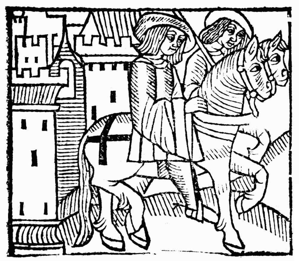 Apres tout ce la dame du chasteau d’amours manda lettres par tous pays que s’il y avoit chevalier qui peust faire troys choses par elle enjointe qu’il seroit maistre et seigneur dudit chasteau d’amours lesquelles nouvelles vindrent au maistre du beau doulx lequel ymagina qu’il ne savoyt chevalier au monde pour le conquerre que le beau doulx lequel pria d’y aller et fut le beau doulx content. Son maistre luy donna de grans richesses et aussi gens souldoiers pour ung an dont grandement le mercya/ et ne partit jusques au moys de may que tout prent joyeuseté. Quant le doulx moys de may fut venu considerant le beau temps/ l’erbe verdoient/ et les arbres disposez a getter joyeuses et belles fleurs/ il se mist en chemin comme preux & vaillant chevalier pour aller conquester ce noble & plaisant chasteau d’amours et ordonna son armee moult honnestement comme bien savoit faire.