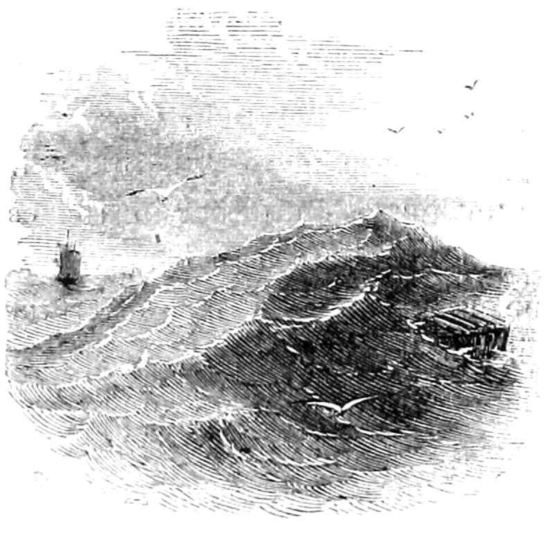In a single moment the men in the boat seemed to take in at a glance all that transpired on board. They saw the stem of the vessel rise so high, that her keel was completely out of water as far as the foremast. The boatswain, the butcher, the baker, and the purser’s mate, it is said, had resolved to attempt their escape in the remaining boat over the cuddy, which was already provisioned and launched; but no sooner were these men ready to put off, than the sinking vessel sank beneath them, making, in her descent, a very whirlpool of angry and confounding waters, and the escaping ones in the cutter saw their comrades swallowed up83 quickly and disappear with the lost ship. They saw young Angell going down while standing at his old post of duty: for a moment they saw two men with life-belts struggling amid mountains of water: they rose with the waves, and then descended into the deep, deep grave which the sea formed for them, and then not a trace of men or of ship was to be seen! The gale thundered so furiously, that if there was a cry from the sinking ship, it was not heard. Once more to the bottom of the Bay of Biscay had gone a noble ship and valuable cargo; but O! saddest of all, more than two hundred forms, that a few days before had been seen sitting in mirth and friendliness around many an English fireside, had gone down too. And once more the billows rolled on, curling their monstrous heads, as if in contempt of the beings who would seek to master them when once they rose in their terrible might and majesty.