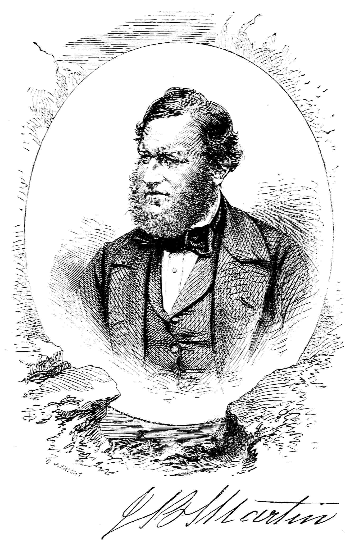 It will be long before Britons will hear the name of John Bohun Martin without tears, as they think of his noble heroism amid circumstances sufficiently appalling to rob the bravest of his self-possession; of his disregard for his own personal safety while duty commanded him to remain at a post of imminent danger; of his resolute perseverance in doing all that the most skilful seaman could, to ride out the furious gale. He was not new to the sea, for from his boyhood he had been accustomed to cope with its storms and dangers, and had not risen to the post of Master without passing through years of the most careful training and discipline. He was born at Brompton, April 27th, 1819. When yet young, having a love for the sea, he was entered as midshipman in the East India ship True Briton, and made several voyages to Madras, Bombay, and Calcutta. He remained in this ship four years, and during this time he diligently studied navigation, particularly in its scientific branches. In 1840, he was appointed third officer of the Southampton, a vessel trading to the East Indies, and having in those days some celebrity as a fast-sailing ship. He passed through twelve additional years of service before he was entrusted with the command of a vessel, but all who knew him spoke very highly of his diligence and general character. He enjoyed the esteem and friendship of the Captains under whom he served: among them were the well-known names of Beach, and Wimble, and Nash.
