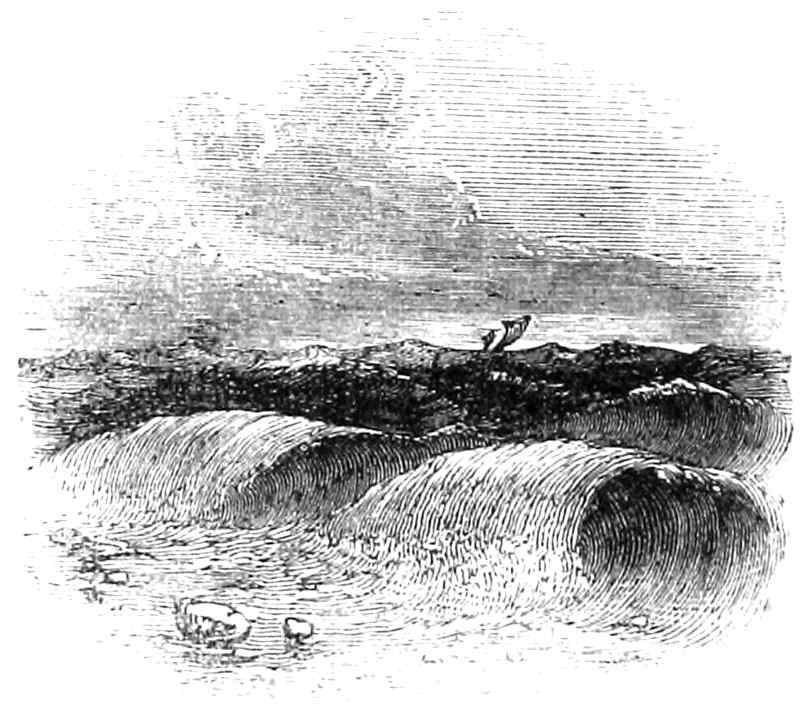 It was a fearful struggle for life that the brave seamen now engaged in, as, with parched lips and every nerve strained to its highest pitch of tension, they rose and fell with the green93 waves still running mountains high. It seemed almost hopeless to attempt to withstand any longer the fury of the sea, which broke over them in angry surges. As we have said, they had but a quart of water on board, and the bottles of spirits. It was a fortunate thing that young Edwards succeeded in getting hold of these and concealing them, for the probability is, that had the seamen given way to drink in their then excited state, raving delirium would have set in, and cutter and crew would soon have been at the bottom. The lad shall tell his own story, and he is worthy of lasting honour and remembrance for his part in it.
